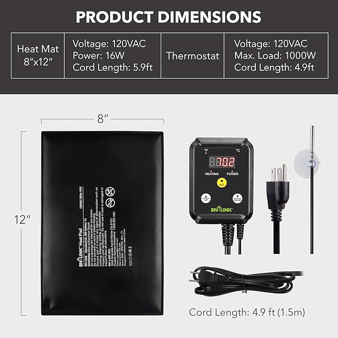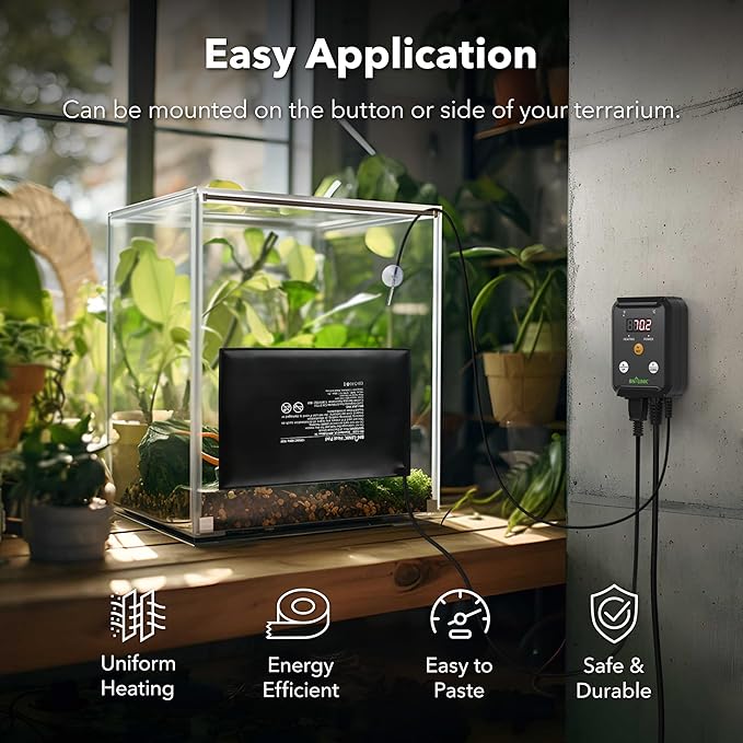 BN-LINK Durable Reptile Heating Pad 8" X 12" with Digital Thermostat Under Tank Heater Terrarium Warmer Combo Set for Turtles, Lizards, Frogs, and Other Reptiles