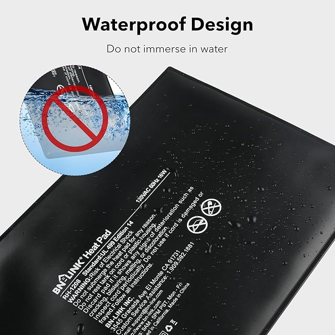 - [DURABLE AND FLEXIBLE]: Not only is the BN-LINK Durable Heating Pad built to last with its durable, water-resistant material, the Heating Pad also remains elastic and flexible. Perfect for most conditions. Each unit comes with BN-LINK’s strong 15-month warranty.