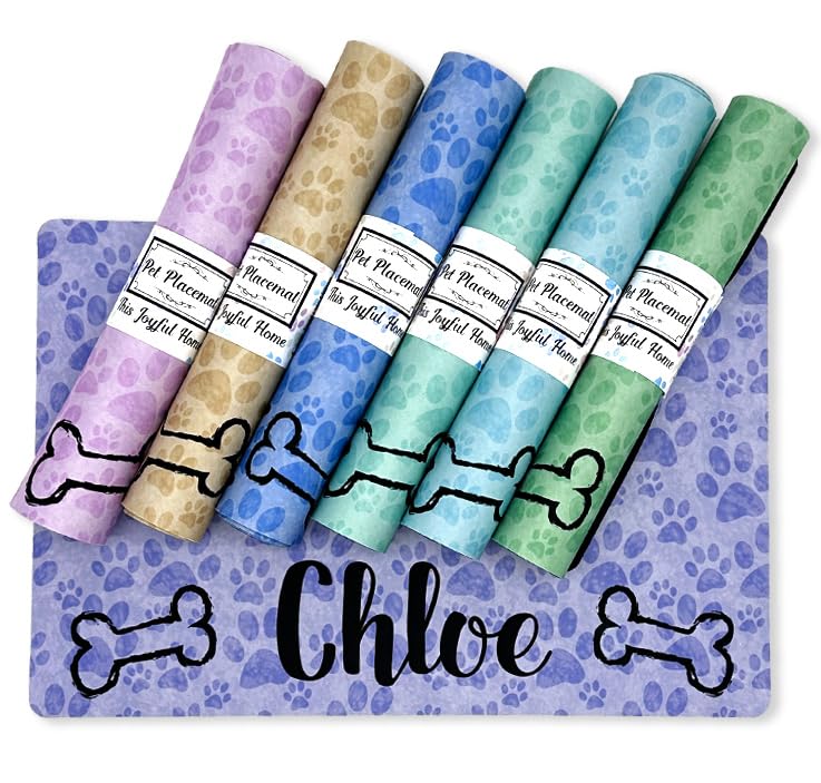 Personalized Dog Bowl Mats for floors - Custom Pet Placemat for your pet food bowl and water dish, small pet food mat or large food mat for big dogs, Washable - Made in the USA