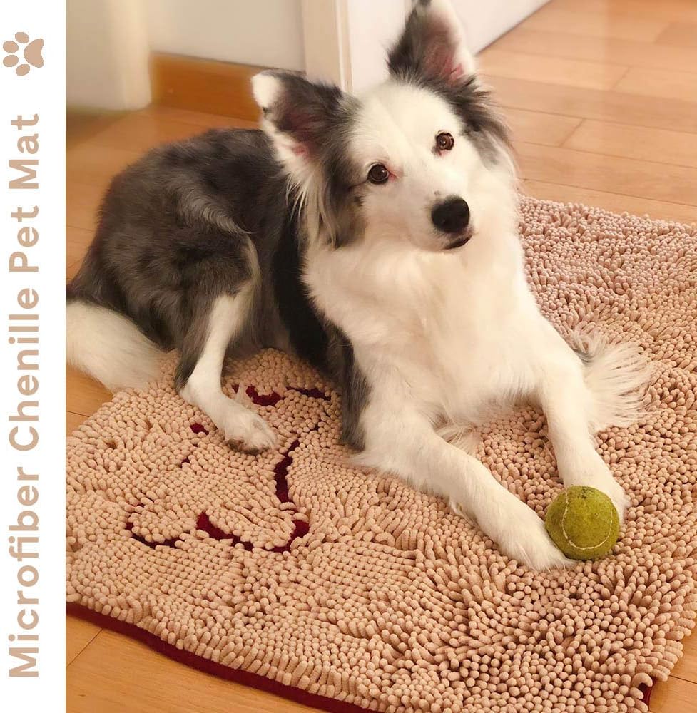 - ABSORBENT: Soft microfiber dog area rug with cute bone design, absorbs more water and traps mud, dirt, and stuff from dirty paws. Can be also used as a dog bath mat to help puppy dry faster after shower.