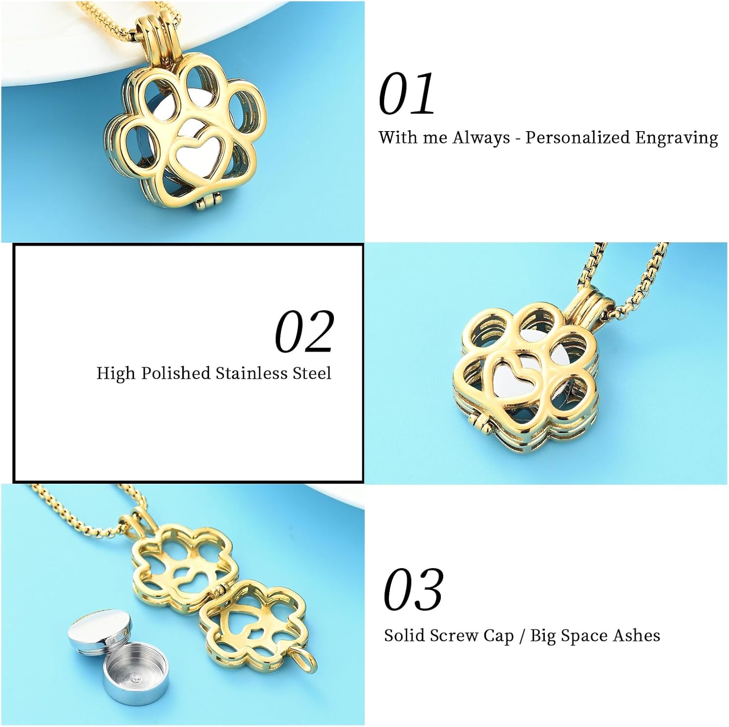 • šŸ¾ć€Quality Material怑Cremation jewelry made of high-quality 316L Stainless Steel, this ashes necklace will never rust, corrode or stain; 100% waterproof and high polished; Exquisite craftsmanship makes sure you will never lose your memories! Last forever just like the memory it represents.