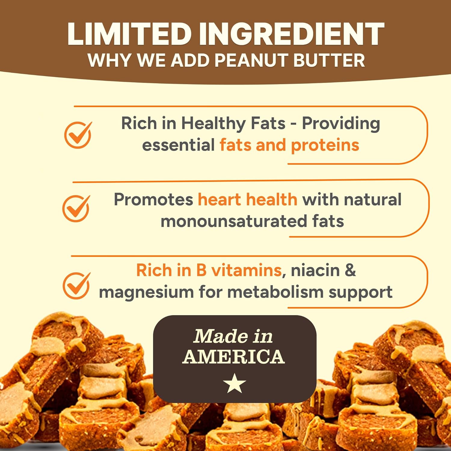 - ENERGY, SKIN & COAT SUPPORT: Peanut butter adds protein and essential fats to maintain healthy skin, a shiny coat, and sustained energy levels for active dogs.