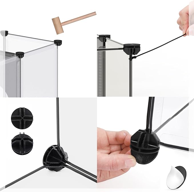 - Easy to assemble: Installation and disassembly are very simple, the free rubber hammer can be used to assist your installation. The cable tie makes the product stronger, and the non-slip mat can prevent the product from sliding and scratch the ground.