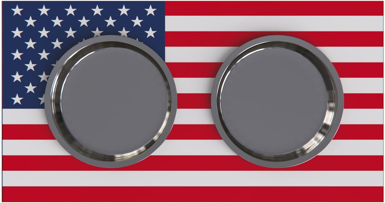 GrooveThis Woodshop - Personalized Elevated Dog Bowl Stand for Large, Medium, Small, X-Small Dogs - Stainless Steel Food and Water Bowls - Raised Dog Dish with Internal Storage (Large, Flag Design)