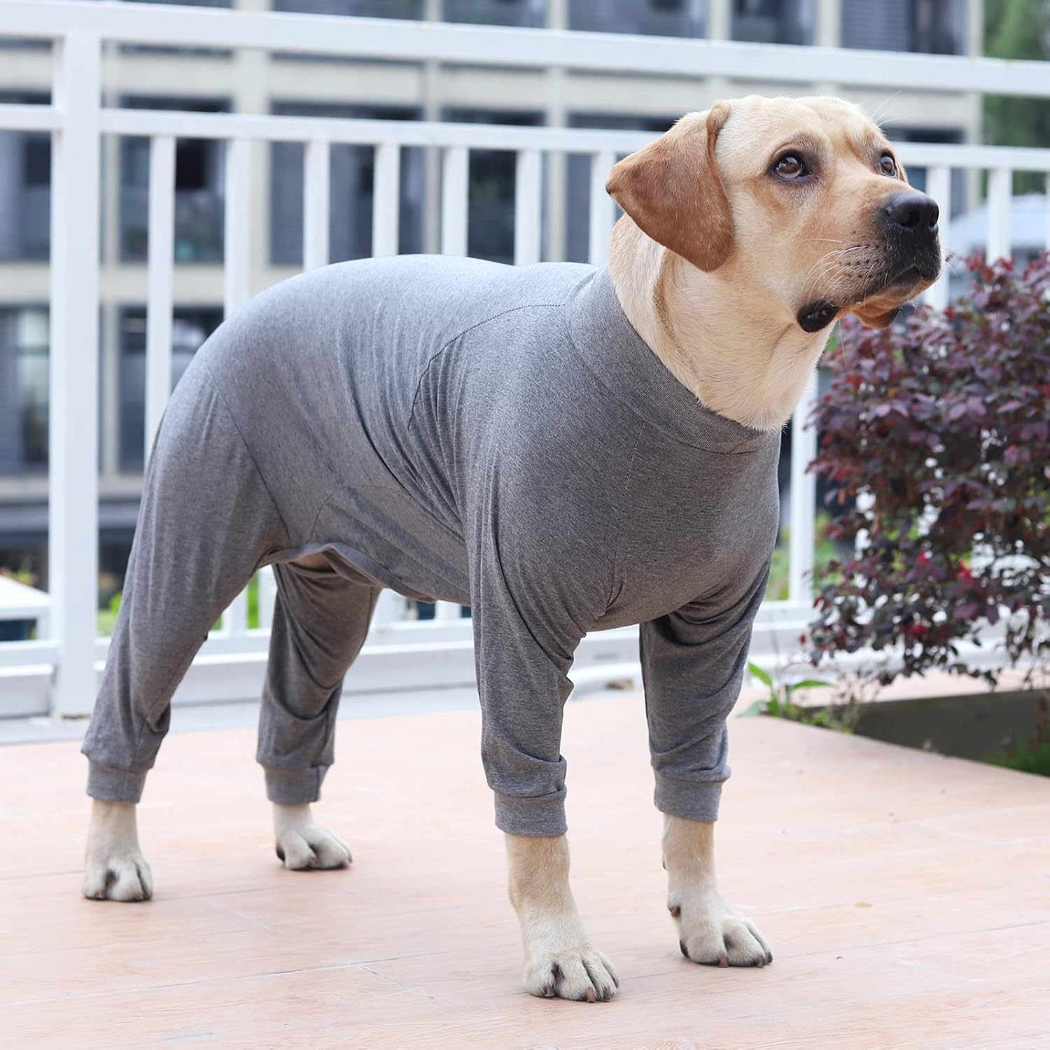 Dog Recovery Suit Abdominal Wound After Surgery Wear Prevent Licking Wounds E-Collar & Cone Alternatives Postoperative Shirt Dog Pajamas Long Sleeve Prevent Shedding (XX-Large, Grey)