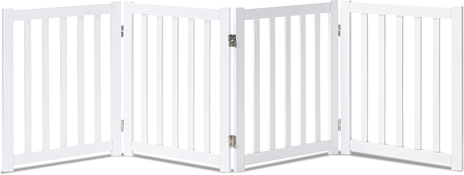 LZRS 4-Panel Wooden Free Standing Foldable Dog Gate Indoor – 24" High, Extra Wide Step-Over Safety Pet Gate for Doorways, Stairs, Hallways, Large Spaces & Playpen for Puppies Indoor Use, White
