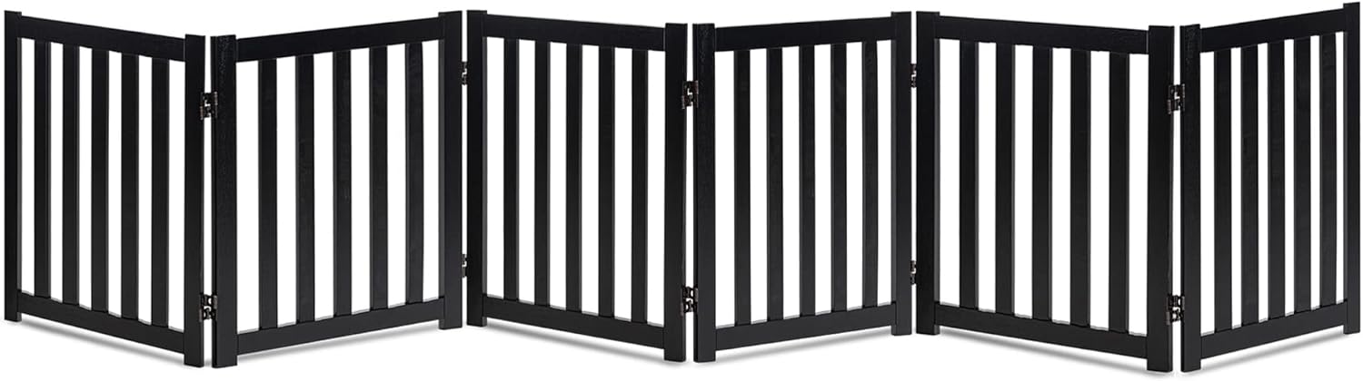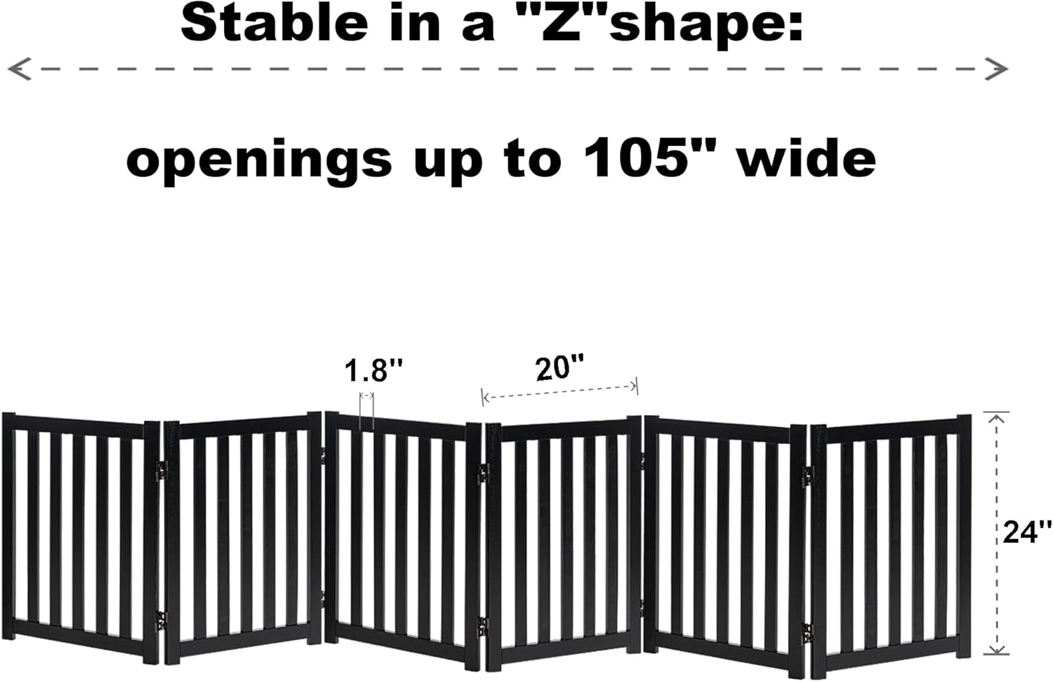LZRS 6-Panel Extra-Wide Freestanding Wooden Dog Gate Indoor – 24”High Foldable Safety Pet Barrier for Doorways, Hallways, Kitchens, and Long Staircases, Durable Design fit Small to Medium Dogs, Black