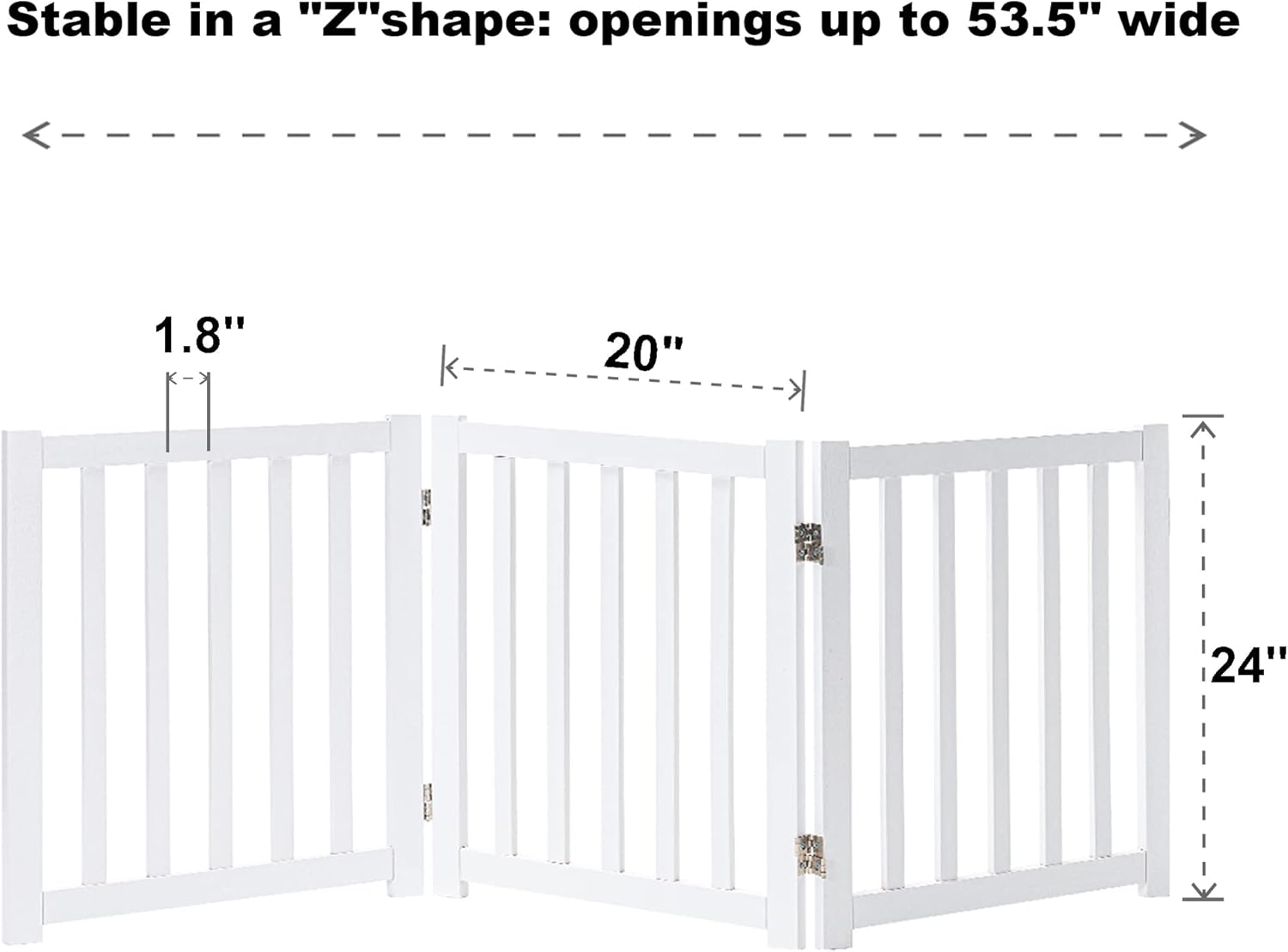 LZRS 3-Panel Wooden Free Standing Foldable Dog Gate Indoor – 24" High,Step-Over Safety Pet Gate for Doorways, Stairs, Hallways, Indoor Dog Barrier for Small to Medium Dogs & Puppies, White