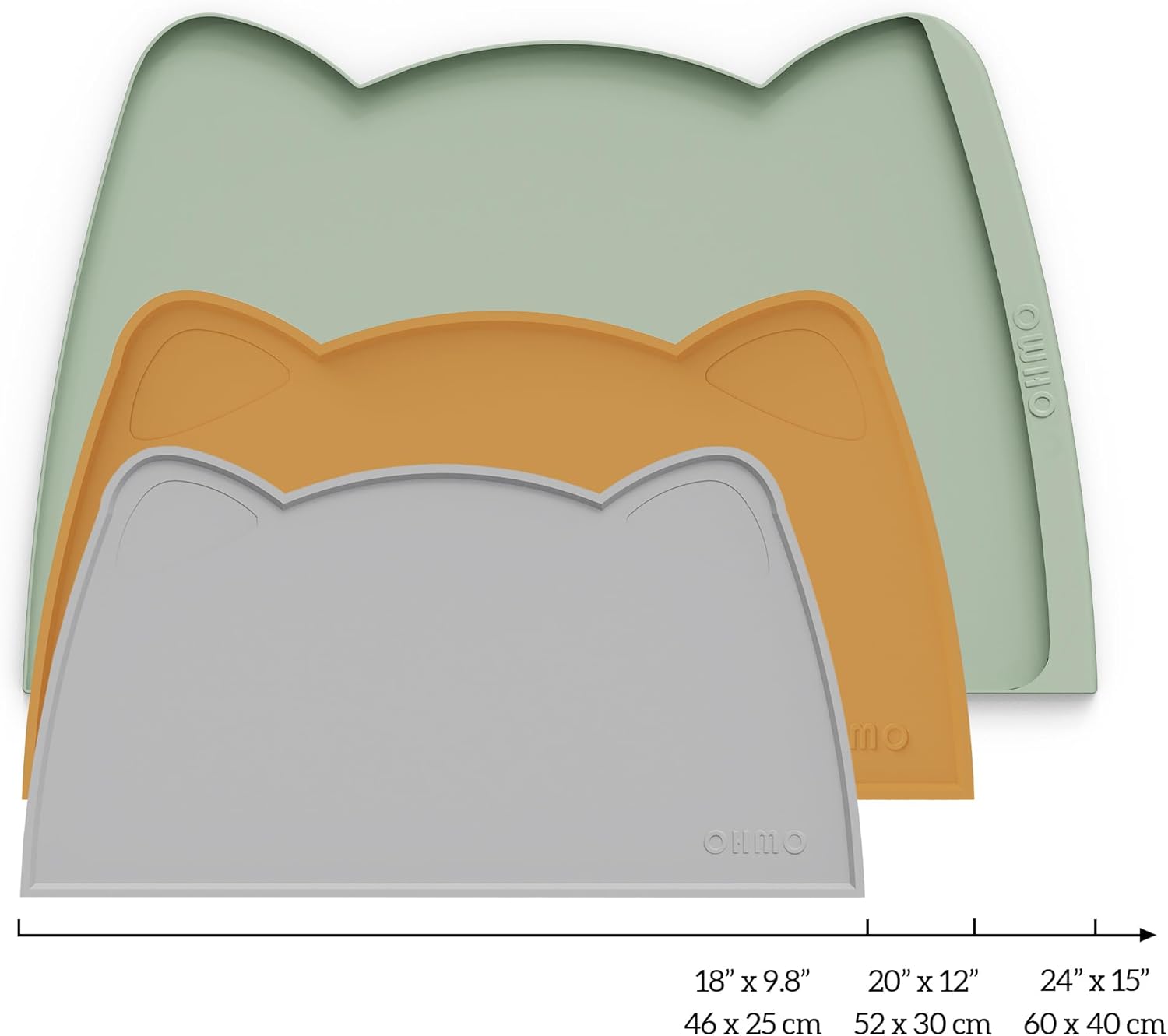 OHMO - Cat Food Mat, Silicone Pet Feeding Mat for Floor Non-Skid Waterproof Dog Water Bowl Tray, Easy to Clean Pet Placemat (Ash Light Grey, 18 * 9.8'')