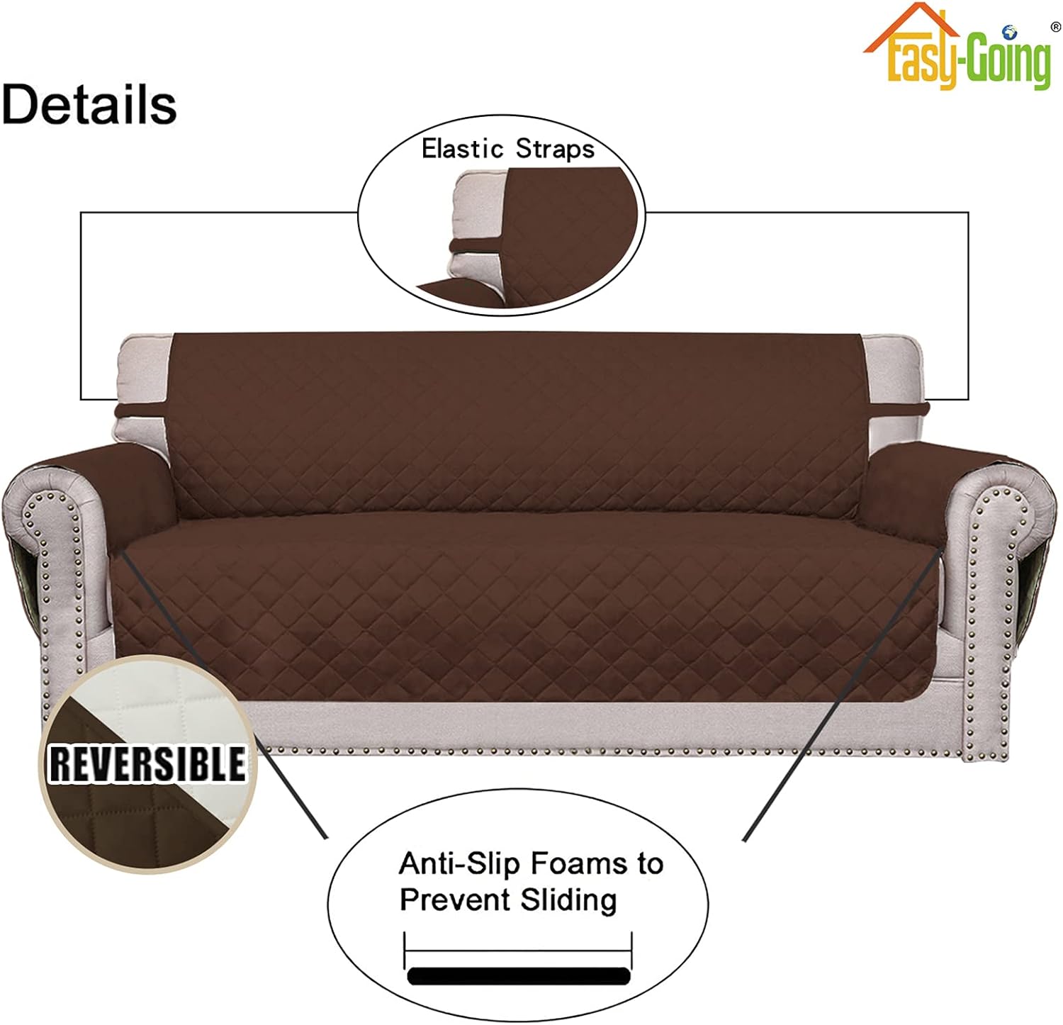 Easy-Going Oversized Chair Sofa Slipcover Reversible Sofa Cover Water Resistant Couch Cover Furniture Protector Cover with Elastic Straps for Pets Dog (Oversized Chair, Coffee/Ivory)