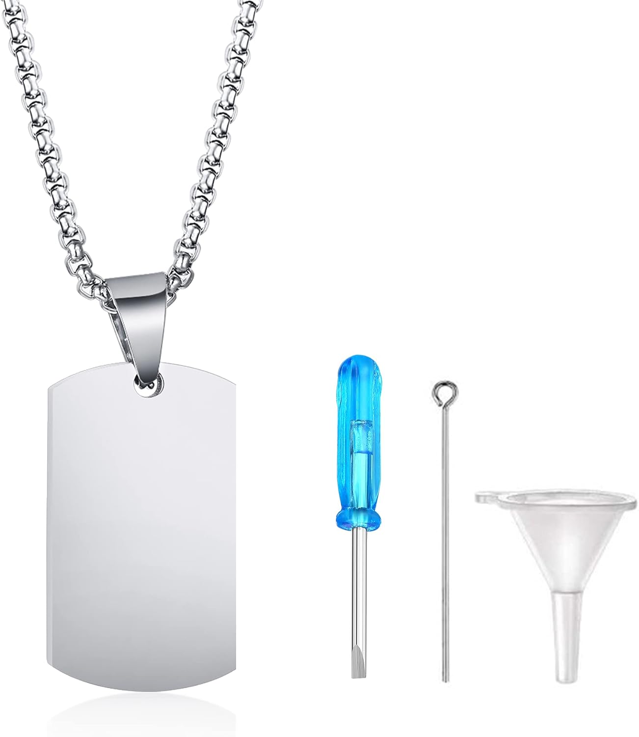 - *TAG URN NECKLACE:Memorial Ashes Pendant Urn Necklace,is a beautiful, touchable reminder of your loved one.The cylinder holds human ashes or pet ashes, and the Oval Charm can be personalized with a name or date on one side.