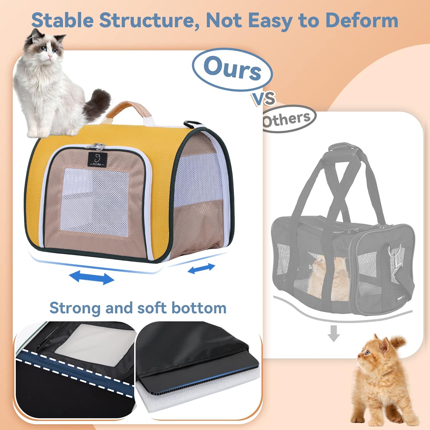 A4Pet Rabbit Carrier, Airline Approved Cat Carrier for Under 12 lbs, Soft-Sided Pet Travel Carrier Yellow, Small