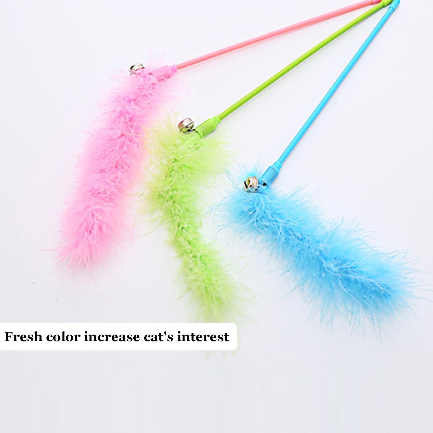 IUHKBH Cat Wand Toys, 3 PCS Interactive Feather Wands Colorful Cat Teaser Wand with Bell for Cats and Kitties