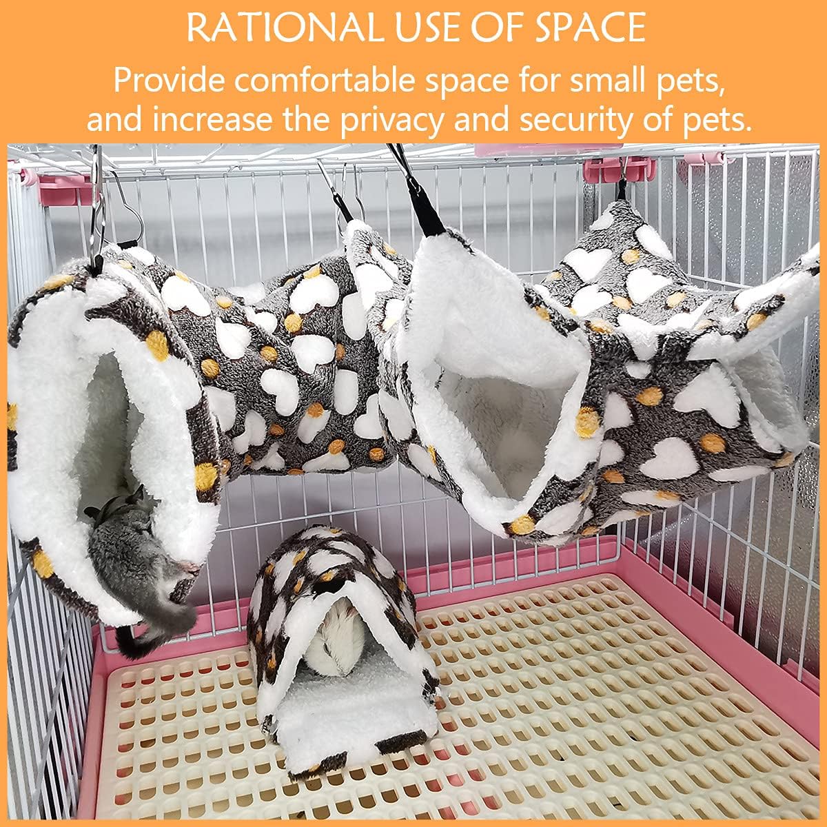 LEFTSTARER Cashmere Pet Bed Mat and Toy, Heart-Brown Ferret Guinea Pig Hammock Toy Small Animal Cage Accessories, 19.7x5.9in Hanging Tunnel & 13.39x13.39in Bunkbed Hammock