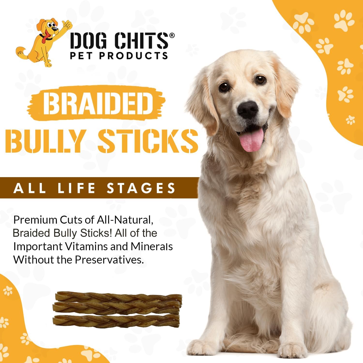 Dog Chits Braided Bully Sticks for Dogs and Puppies | 12-inch, 3 Pack | Natural Healthy Long Lasting Chew for Large and Small Dogs Protein Treats | Odor Free