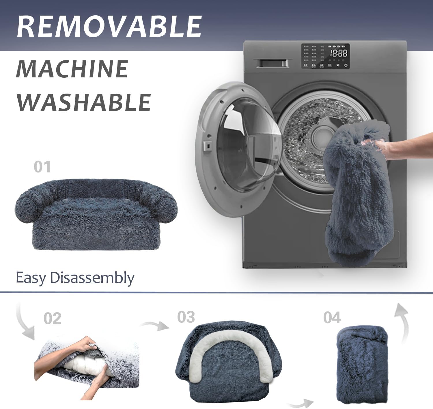 Calming Dogs/Cats Bed Mats, Dog Pad Washable Removable Couch Cover, Plush Long Fur Mat for Pets, Waterproof Lining, Perfect for Small, Medium and Large Dogs and Cats (Navy Blue, 36"x31")