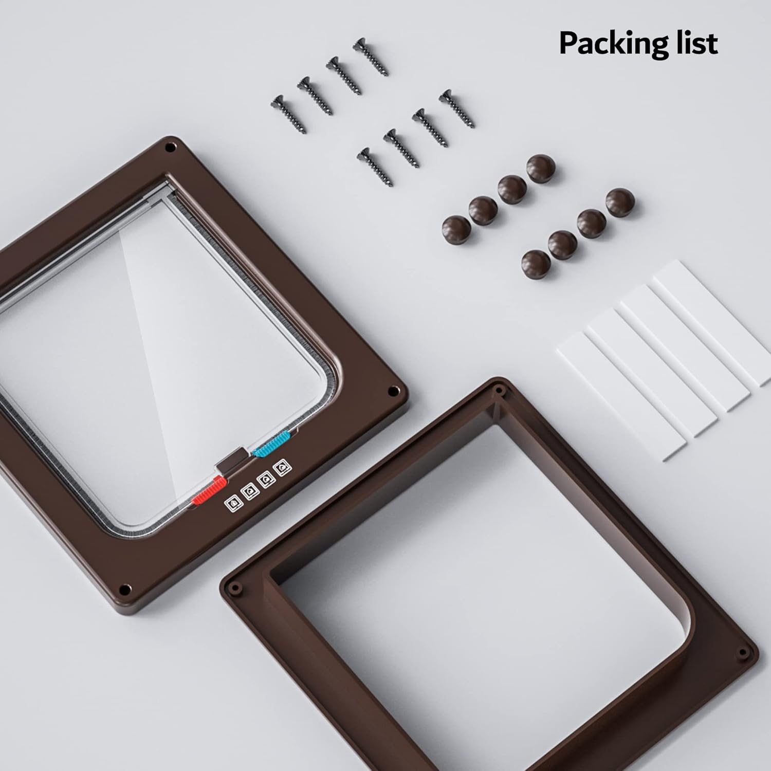 Extra Large Cat Door, Pet Door for Dog or Cat, 4 Switch Modes Locking Cat Door Interior Door Suitable for Window and Wall (Brown)