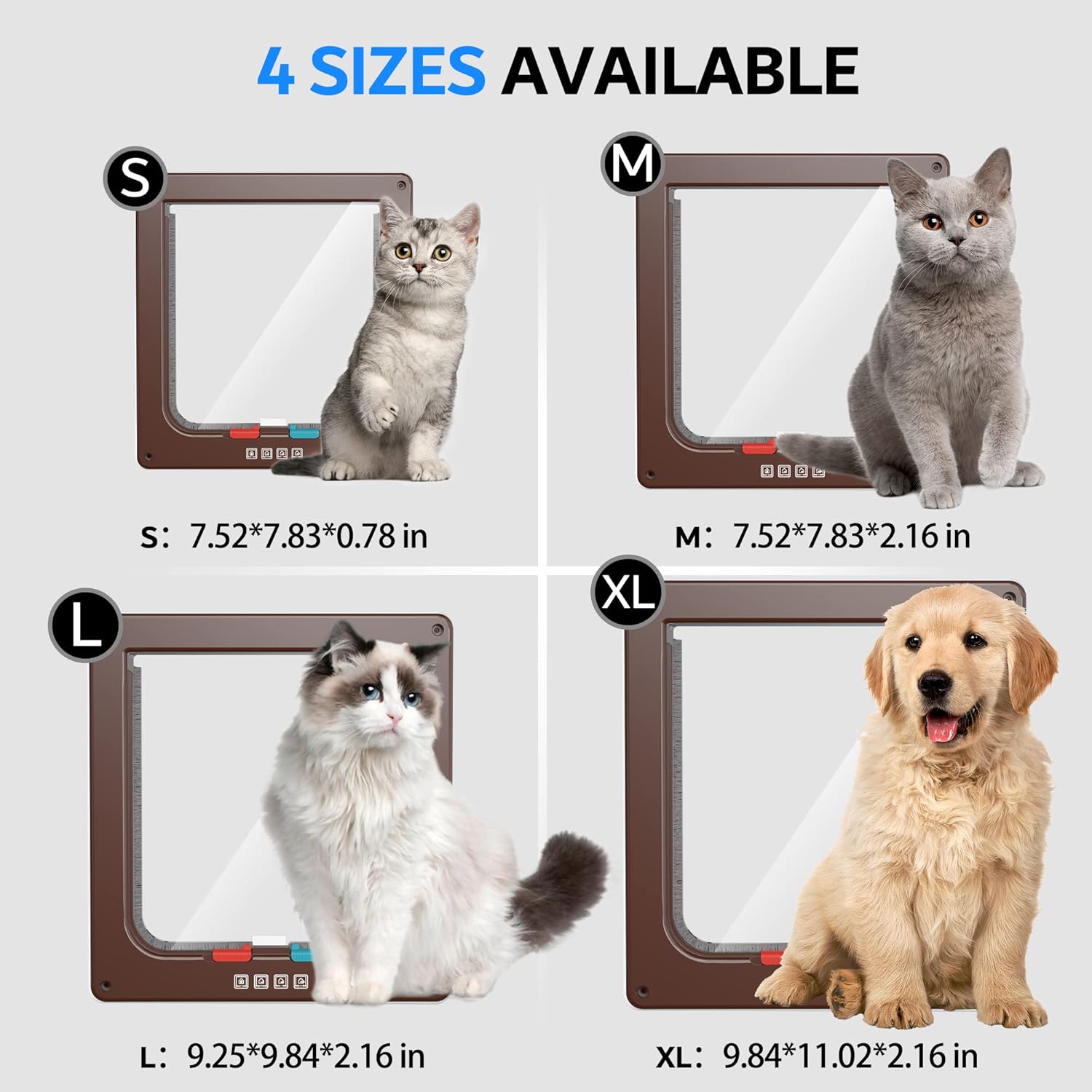 Medium Cat Door Interior Door Pet Door for Cat Exterior Door 4 Modes Locking Suitable for Window and Wall (Brown)