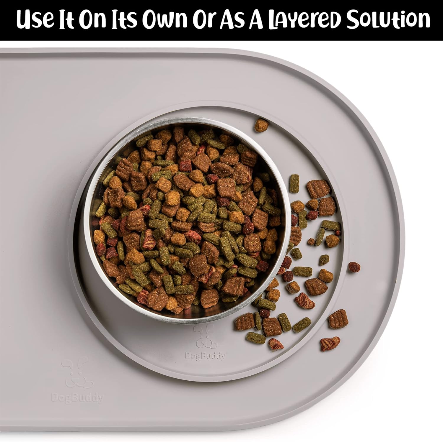 - FOR ALL PETS: DogBuddy is your pet’s buddy! Our food mat can be used for all house pets – dogs, cats, and other small animals. Use this food mat under dog and cat bowls, water fountain, automatic feeder, feeding stations to protect your floors. It is pet supplies must have!