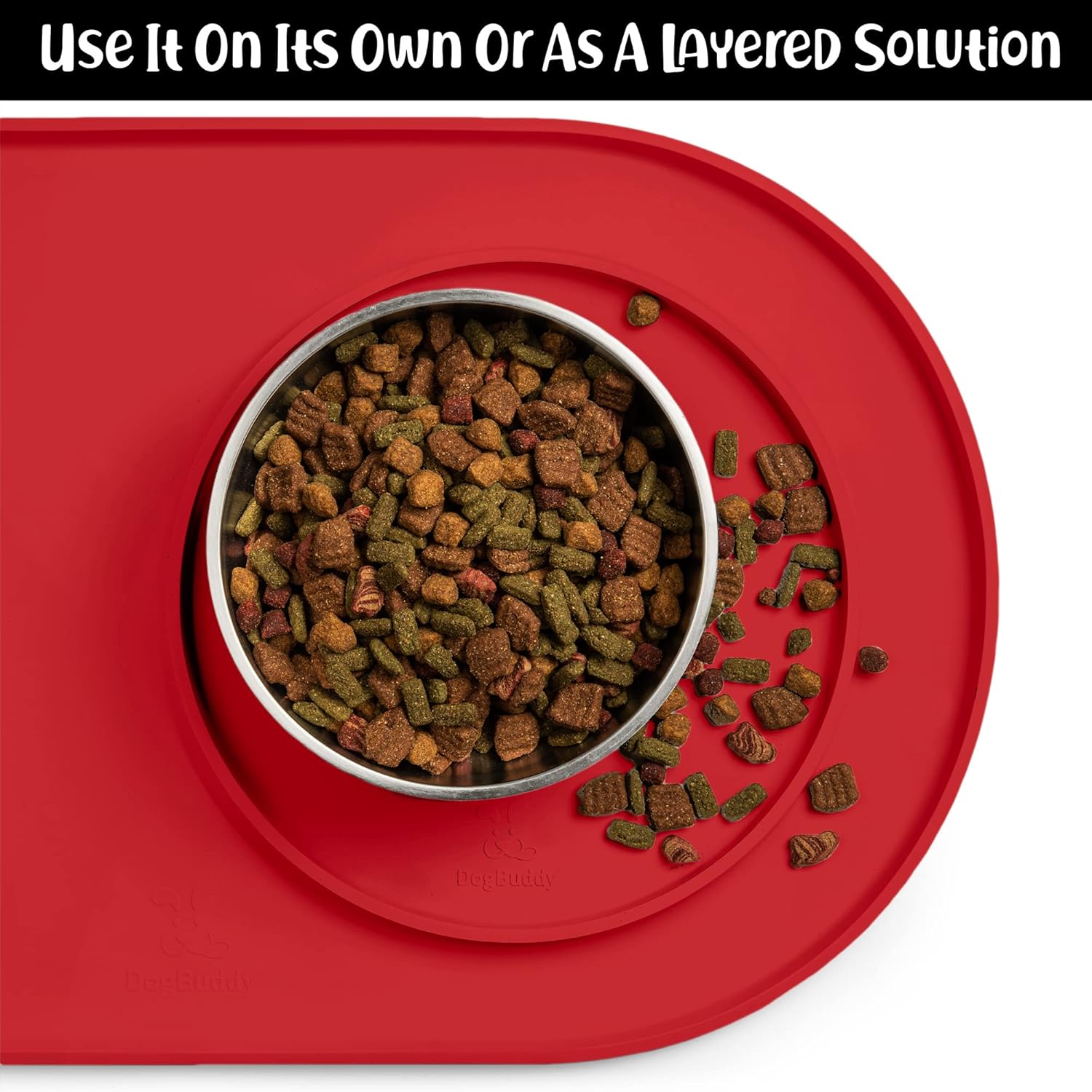 DogBuddy Dog Food Mat - Waterproof Dog Bowl Mat, Silicone Pet Mat for Food and Water Bowls, Nonslip Pet Feeding Mat with Edges, Dogs Food Mats for Floors, Puppy Supplies (XS, Red)