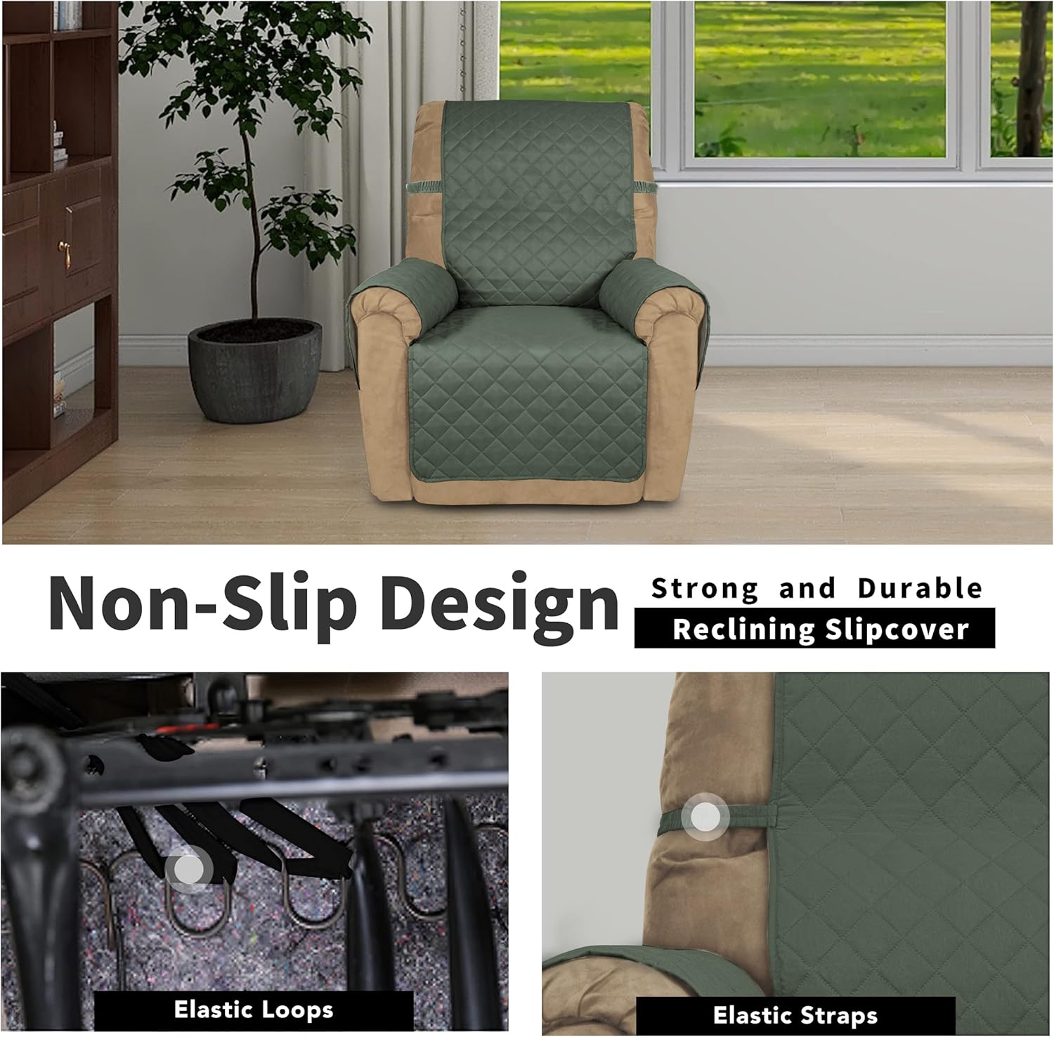 Easy-Going Recliner Chair Slipcover Reversible Sofa Cover Water Resistant Couch Cover Furniture Protector with Elastic Straps for Pets Dog (Recliner 22 inch, Greyish Green/Beige)