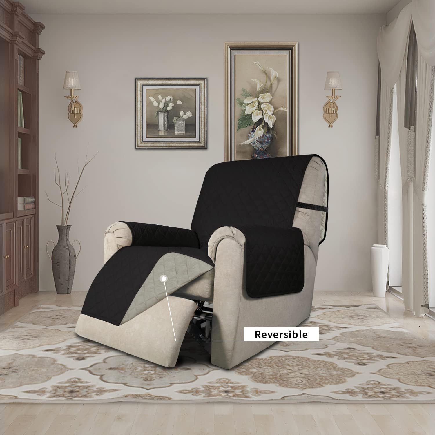 Easy-Going Recliner Chair Slipcover Reversible Sofa Cover Water Resistant Couch Cover Furniture Protector with Elastic Straps for Pets Dog (Recliner 22 inch, Black/Beige)