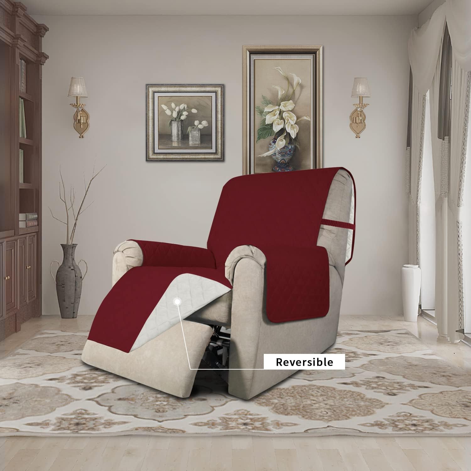 Easy-Going Recliner Chair Slipcover Reversible Sofa Cover Water Resistant Couch Cover Furniture Protector with Elastic Straps for Pets Dog (Recliner 22 inch, Christmas Red/Ivory)