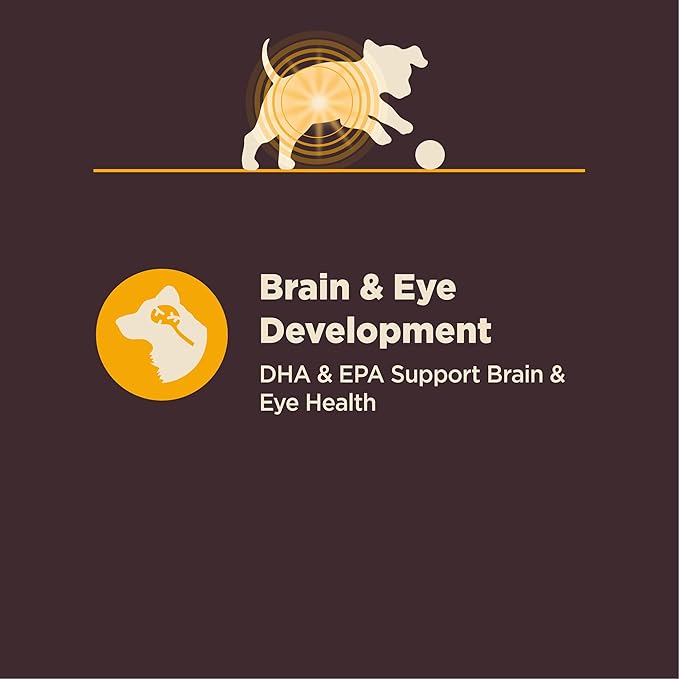 - SUPPORTS HEALTHY BRAIN DEVELOPMENT AND BONE GROWTH: This kibble is for puppies less than 1 year old. Contains guaranteed levels of DHA and EPA for healthy cognitive development, calcium and phosphorus for healthy bone growth and omega fatty acids for healthy skin and coat.