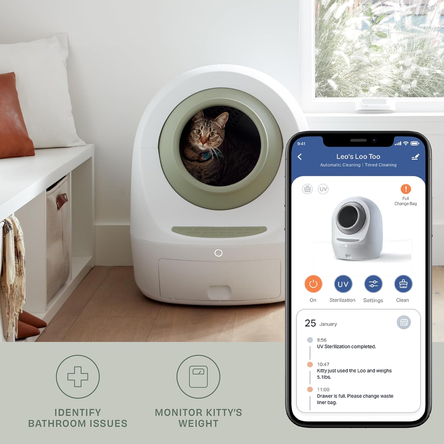 - AUTOMATIC CLEANING: The Loo detects when kitty has finished in the litter box and sifts clumps from clean litter, depositing waste into the drawer below. You can say so long to scooping and daily litter chores. Most cat parents only change the liner 1x weekly!