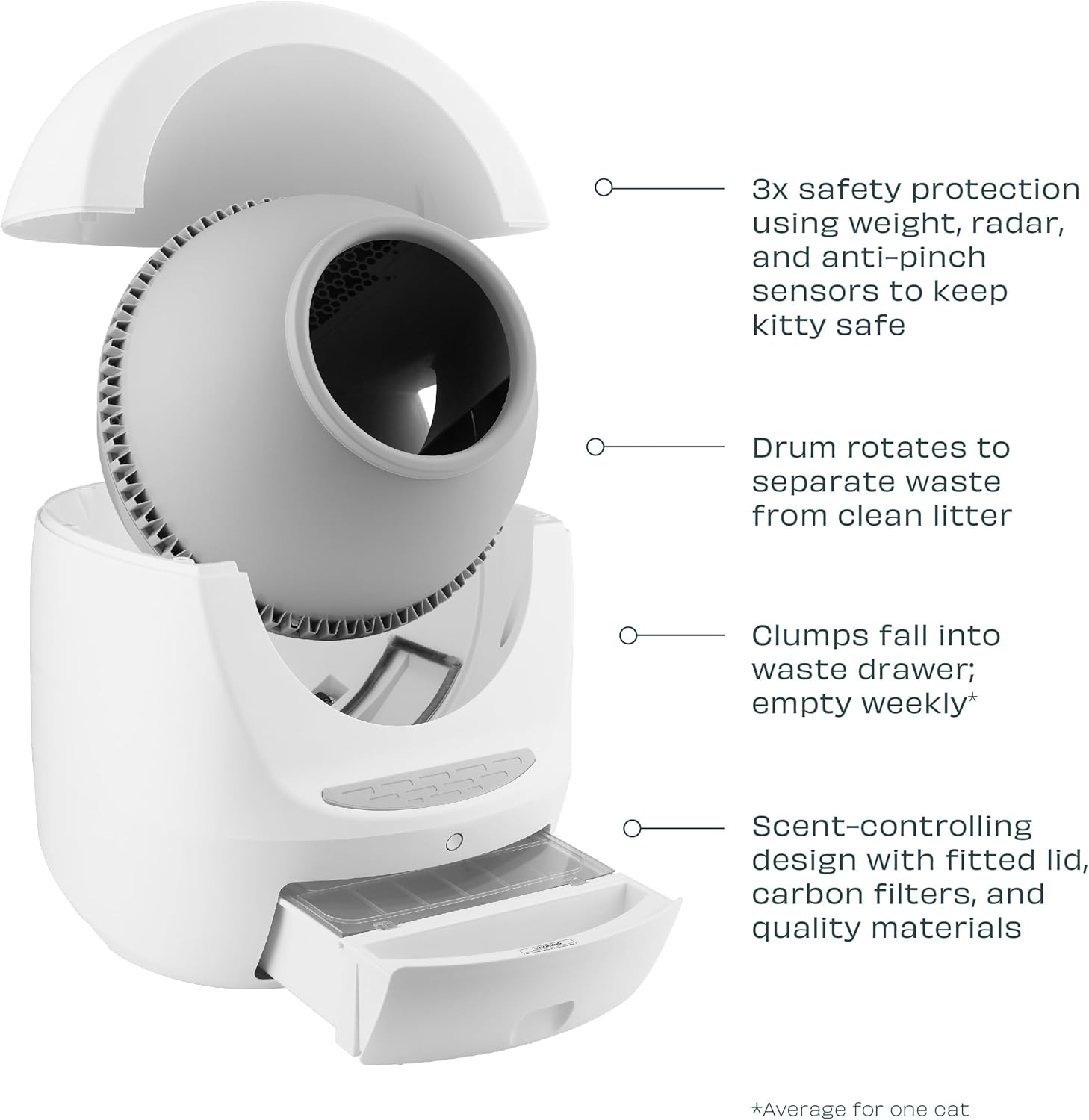 - HEALTH MONITORING APP: The connected app tracks kitty’s weight and logs every visit to the litter box, which has helped countless cat parents identify health issues early. The app also allows for custom settings and remote cleaning, and with voice control enabled you can even ask Alexa or Google to run a cleaning cycle