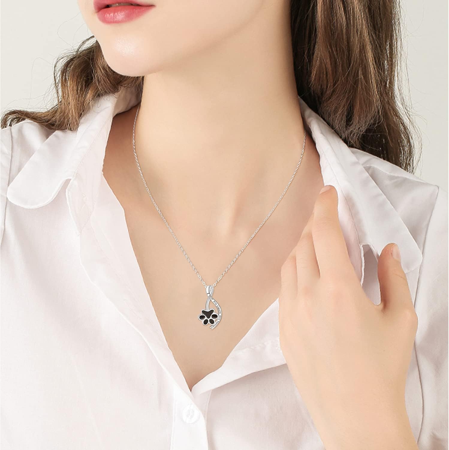 Dreamboat Urn Necklace for Dog Cat Ashes 925 Sterling Silver Pet Cremation Memorial Pendant Paw Print Ash Keepsake Jewelry for Women