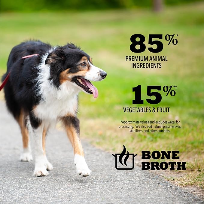 - This grain free* dog food is made with 85 percent** animal ingredients and 15 percent*** visible fruit, vegetables and nutrients, providing extra hydration and a delicious flavor dogs crave