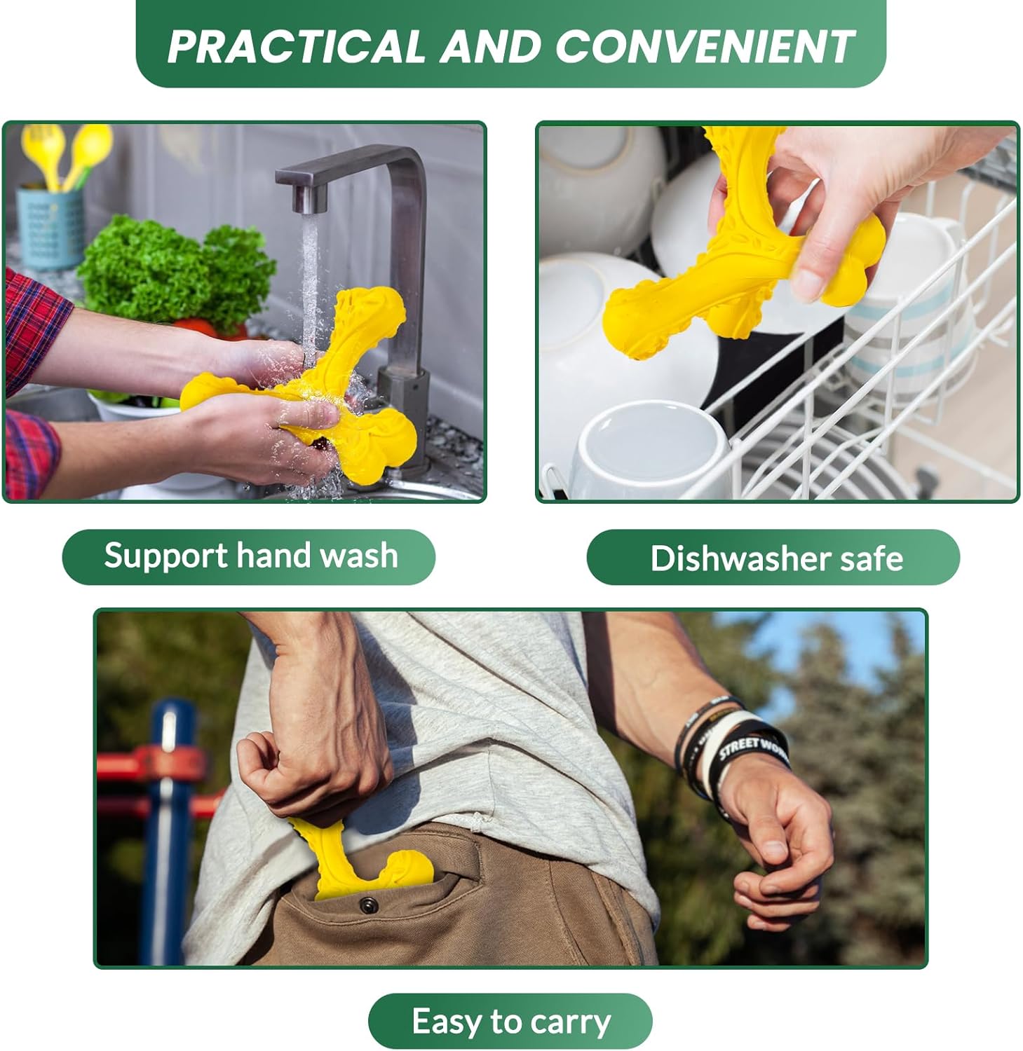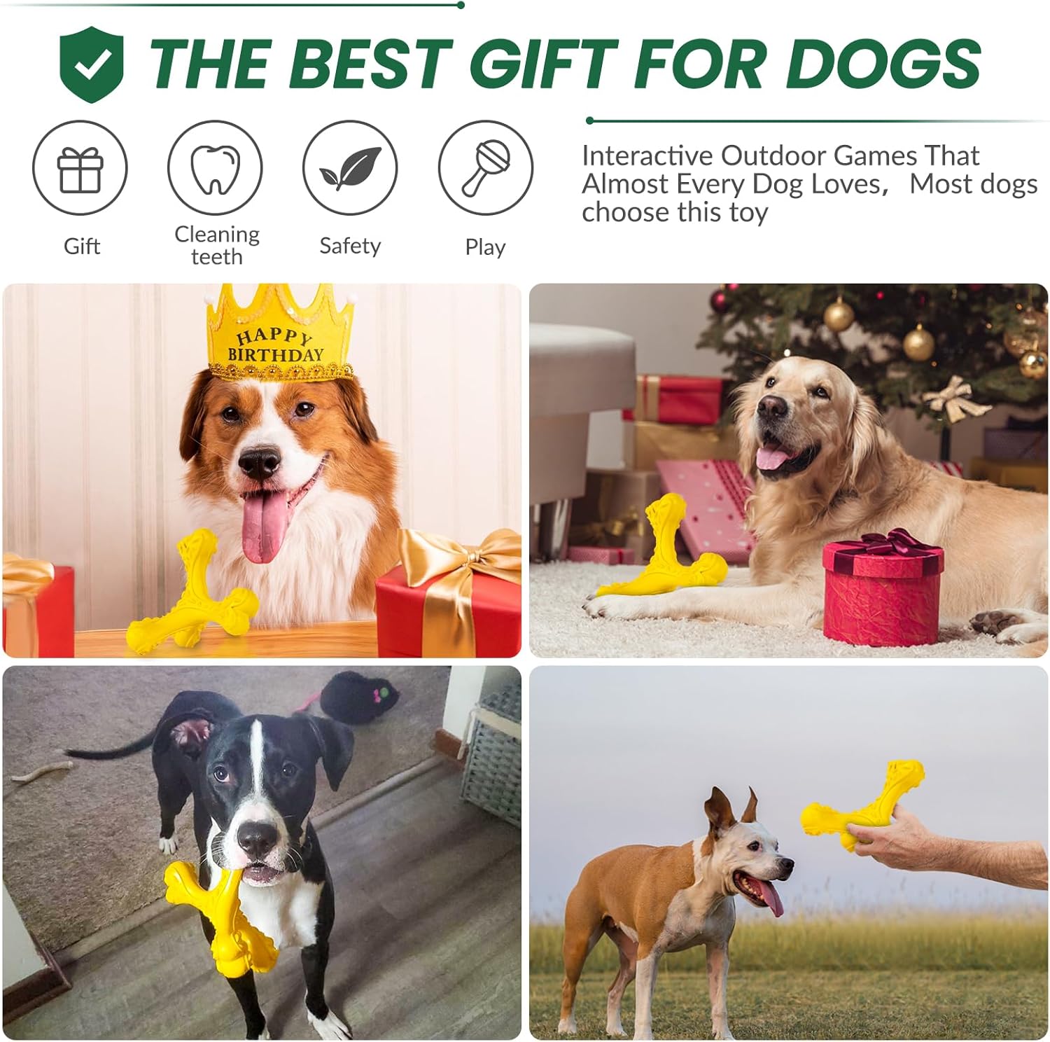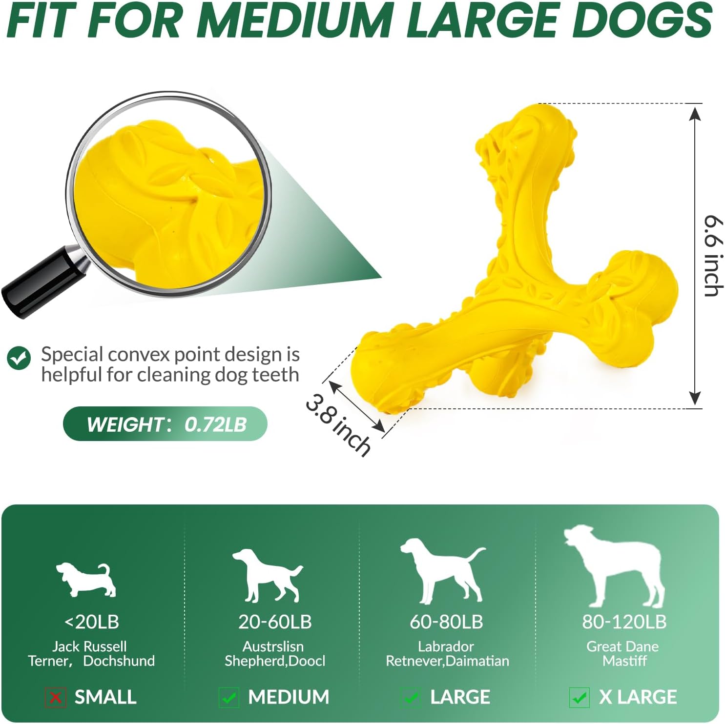 Dog Chew Toys for Aggressive Chewers Large Breed,Indestructible Bones Toy,Durable Cleaning Toothbrush Natural Rubber Dog Toys… (Yellow)