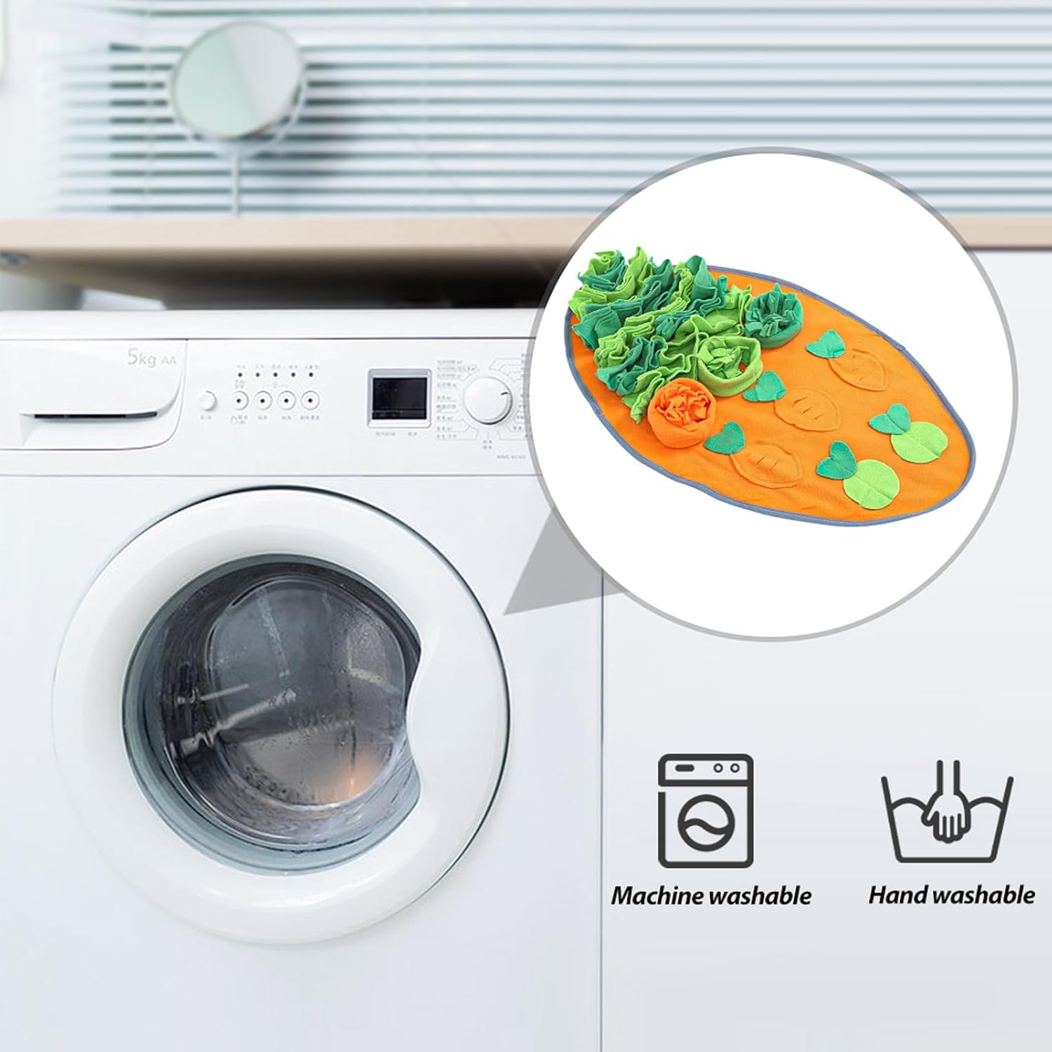 - FUNNY FEEDING GAME: The Snuffle mat for large rabbits has a big green messy grass with 5 layers of carrot prints and three food pockets which can hide large food chunks and small size food easily. In order to provide more fun for lovely rabbits.