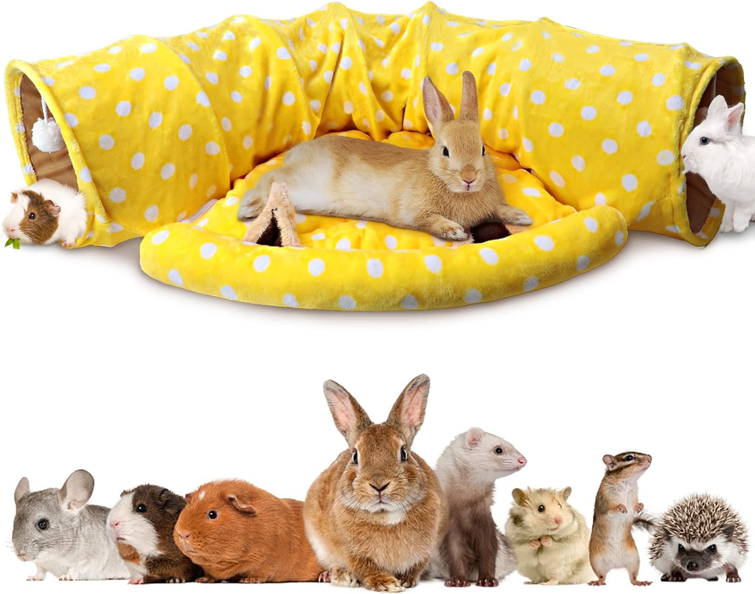 BWOGUE Bunny Tunnel Bed, 2-in-1 Collapsible Tunnel Tubes Toys with Removable Mat Hideout for Cats Kittens Rabbits Guinea Pigs Kitty