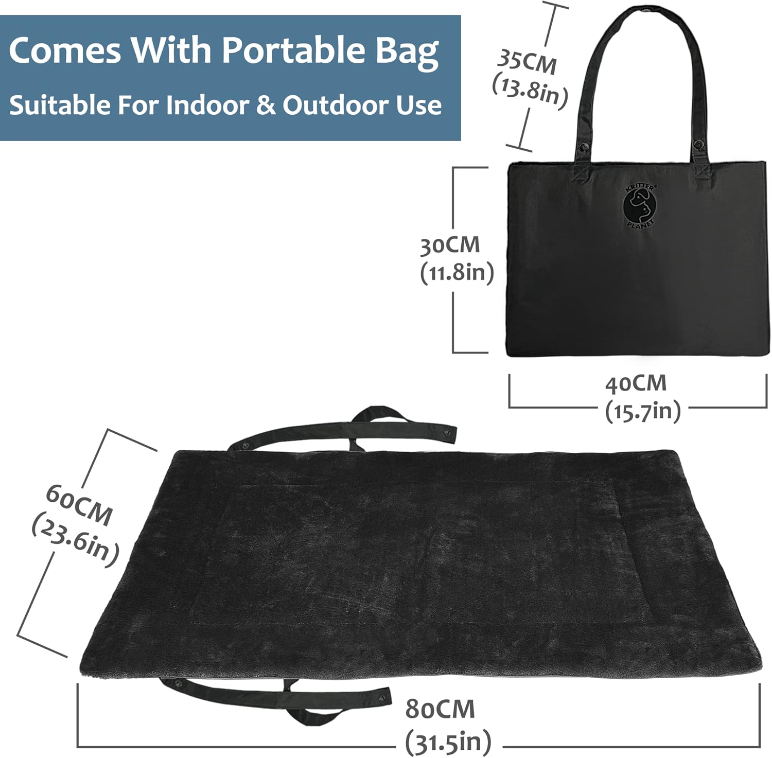 - PORTABLE & LIGHTWEIGHT: portable dog mat with handles can be easily folded into a tote bag. Very lightweight to carry around. The extra-long handle makes it easy to roll over your shoulders on the go.