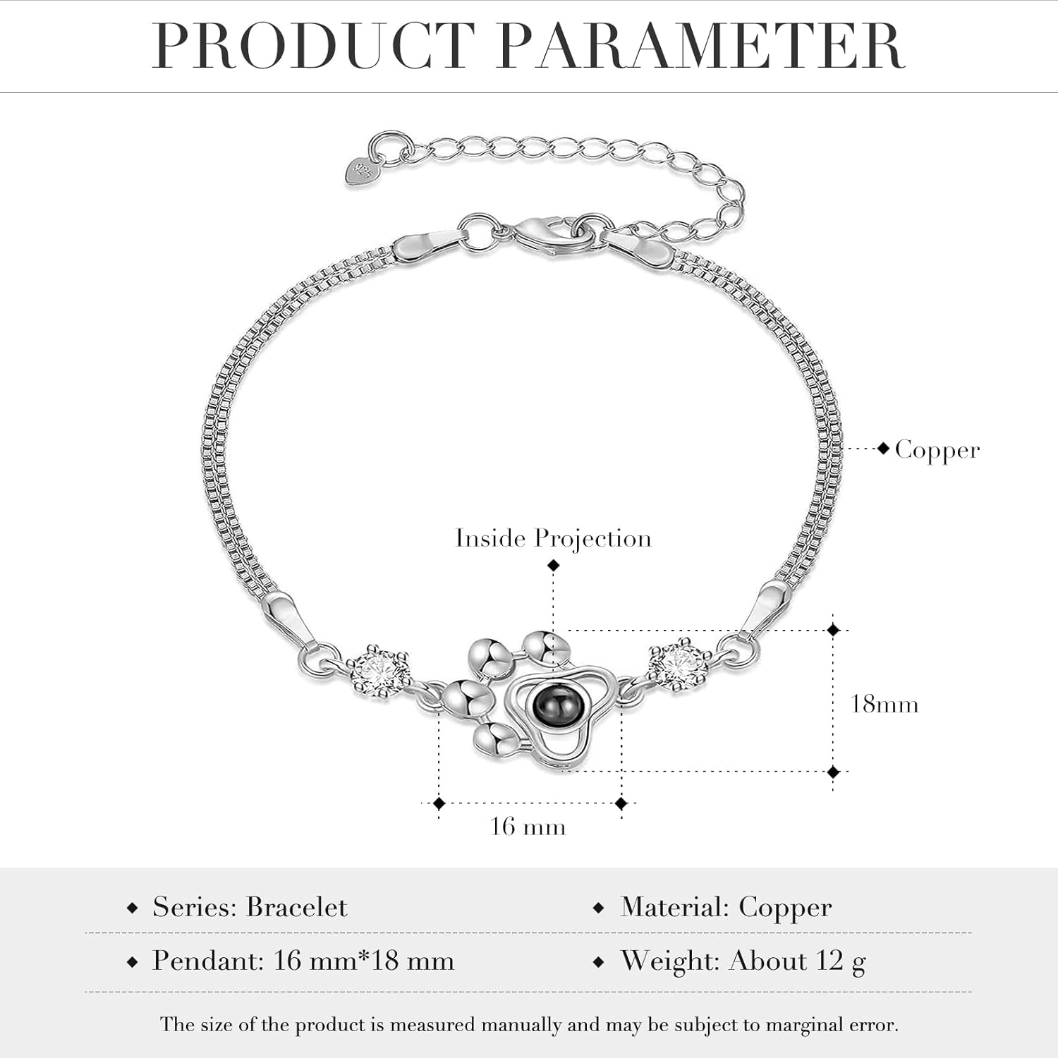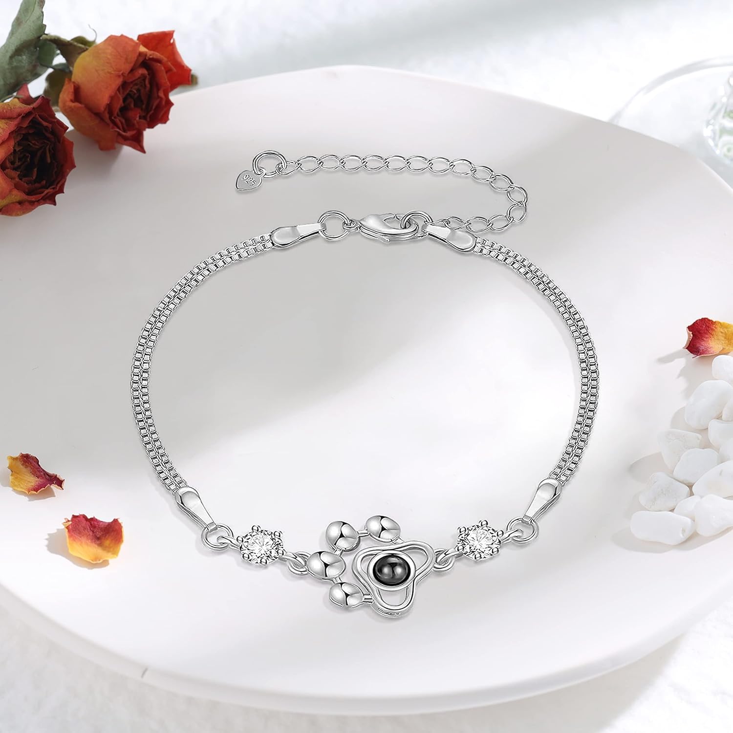 OPALSTOCK Personalized Pet Photo Necklace, Custom Photo Charm Projection Necklace Dog Cat Paw Pendant Pet Memorial Jewelry