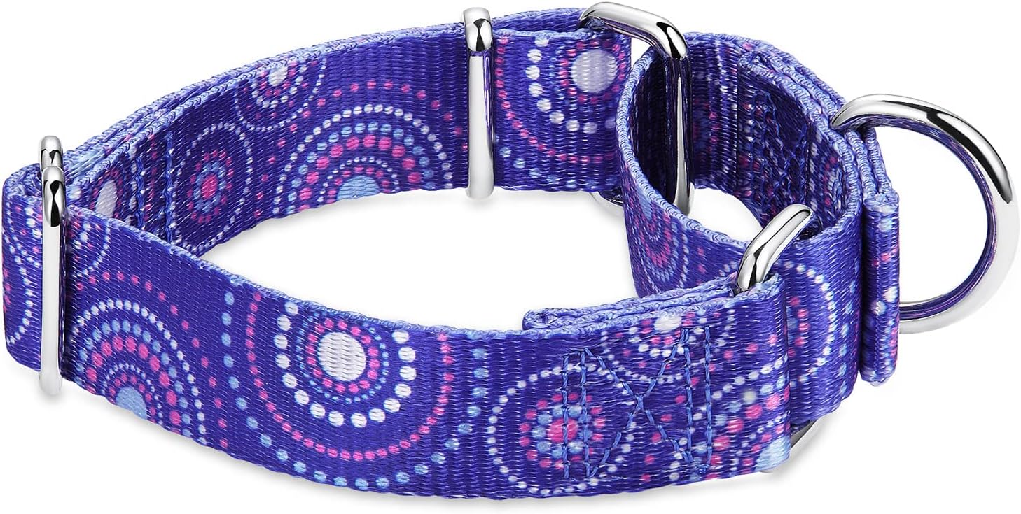 Martingale Collar Dog Collar No Pull Pet Collar Heavy Duty Dog Martingale Collars Silky Soft with Unique Pattern for Medium and Large Dogs (Medium, 1 Inch Wide, Firework Dots -Royal Blue)