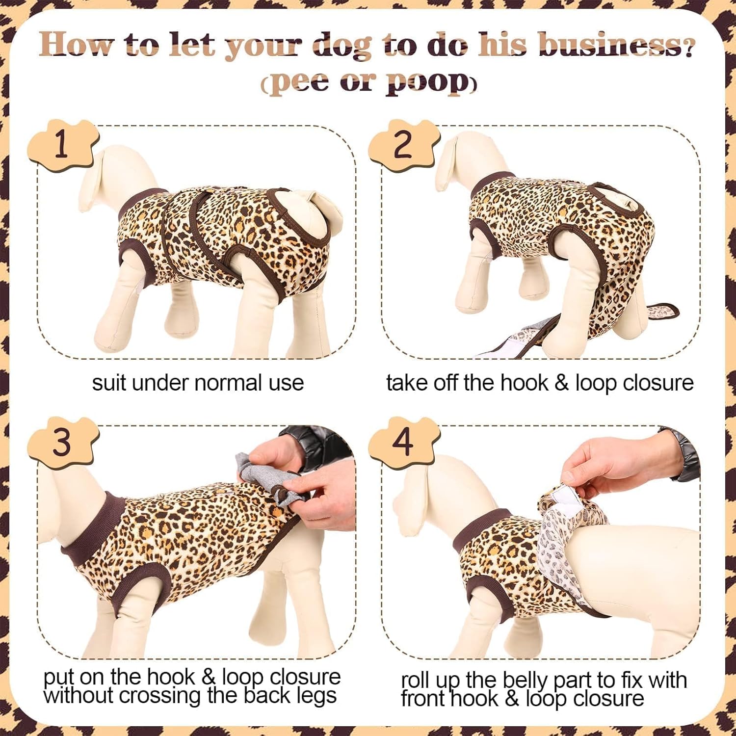 Kuoser Recovery Suit for Dogs, Dog Recovery Suit Female Doggie Onesie for Surgery, Post-Op Onesie for Female & Male Dogs, Soft Protective Wear, BrownLeopard M