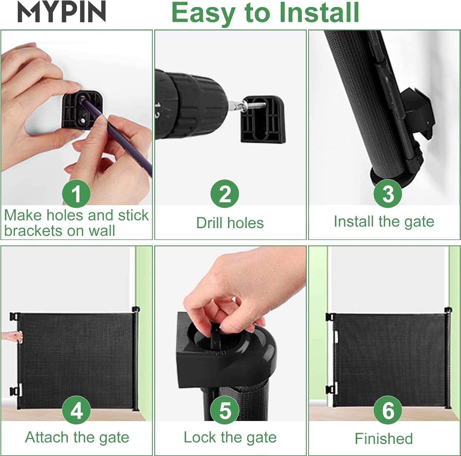 - 【Detachable Baby Gate】Unlike traditional metal safety gate which is fixed once installed, this MYPIN baby gate is detachable and can be relocated by the included One set of mounting hardware. You could easily clip-on & clip-off the safety gate to use it in more than one location (don't install at the top of the stair)