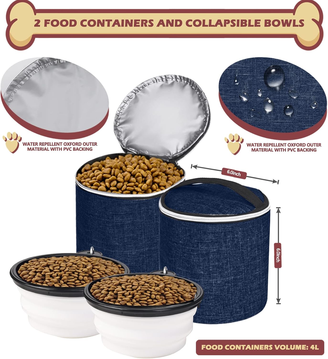 - IDEAL TRAVEL:This pet backpack can accompany you and your pets to spend happy time no matter when and where; Its front pocket is opened as a feeding pad, and the side mesh pocket can carry a kettle and towels,each food container can hold 12 -15 cups of coarsely ground food to meet your needs for easy pet feeding anytime,anywhere.
