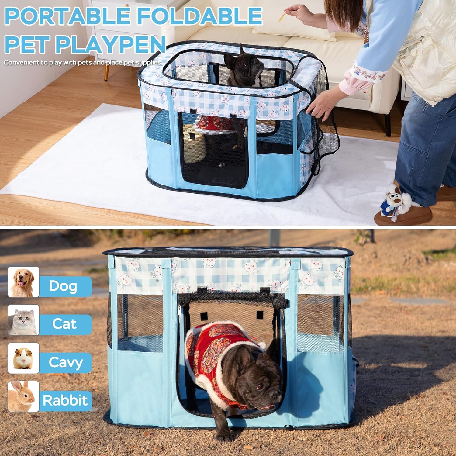 Dog and CAT pop Play Pen,Pets Houses for Dogs and Cats,Indoor&Outdoor Exercise Pen Dog Tent Puppy Playground Large (M, Bule)