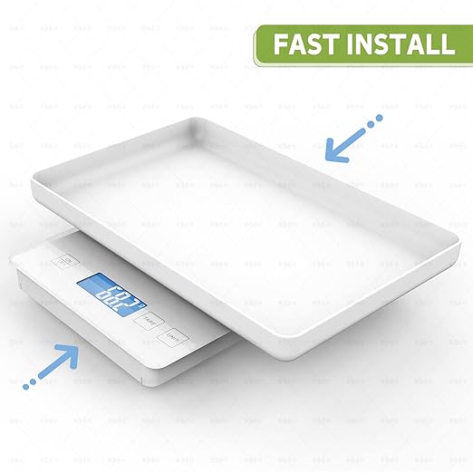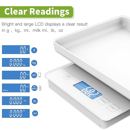 - 【Tray design, Stylish and High-Quality 】: The surface of the digital small animal scale/kitchen scale is made of tempered glass, which is stylish, durable, and easy to clean. Four-corner non-slip base design, stable weighing. Equipped with an 11"x 7" Inch high-grade ABS environmentally friendly rectangular tray, safe and comfortable, no need to worry about your pet slipping out of the tray. Can be used as a dust cover when not weighing