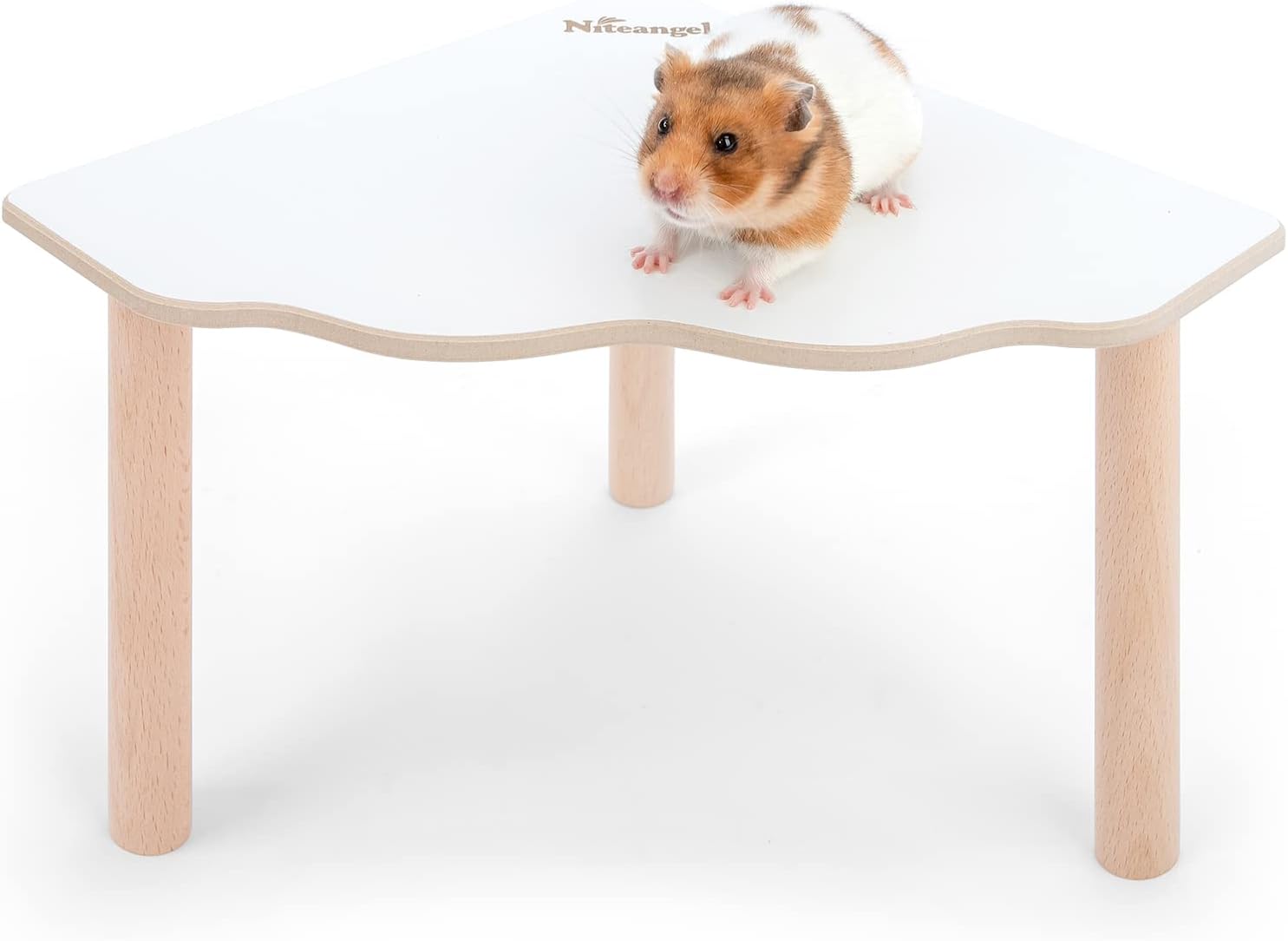 Niteangel Hamster Play Wooden Platform for Dwarf Syrian Hamsters Gerbils Mice Degus or Other Small Pets (Triangle - 5.9'' Height, White)