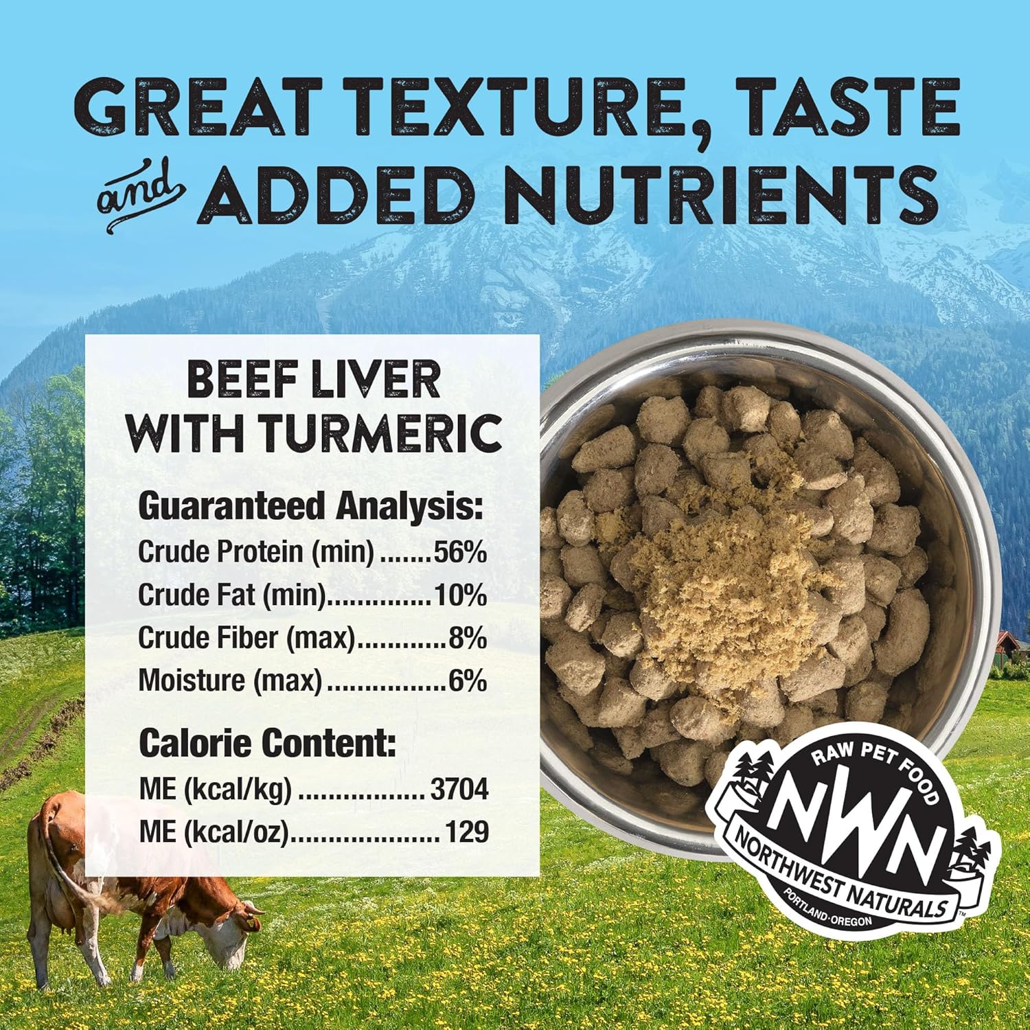 Northwest Naturals Freeze-Dried Beef Liver with Turmeric - Functional Topper for Dogs and Cats - Healthy, Limited Ingredients, Grain Free - Human Grade Pet Food, All Natural - USA Made - 4.5 Oz