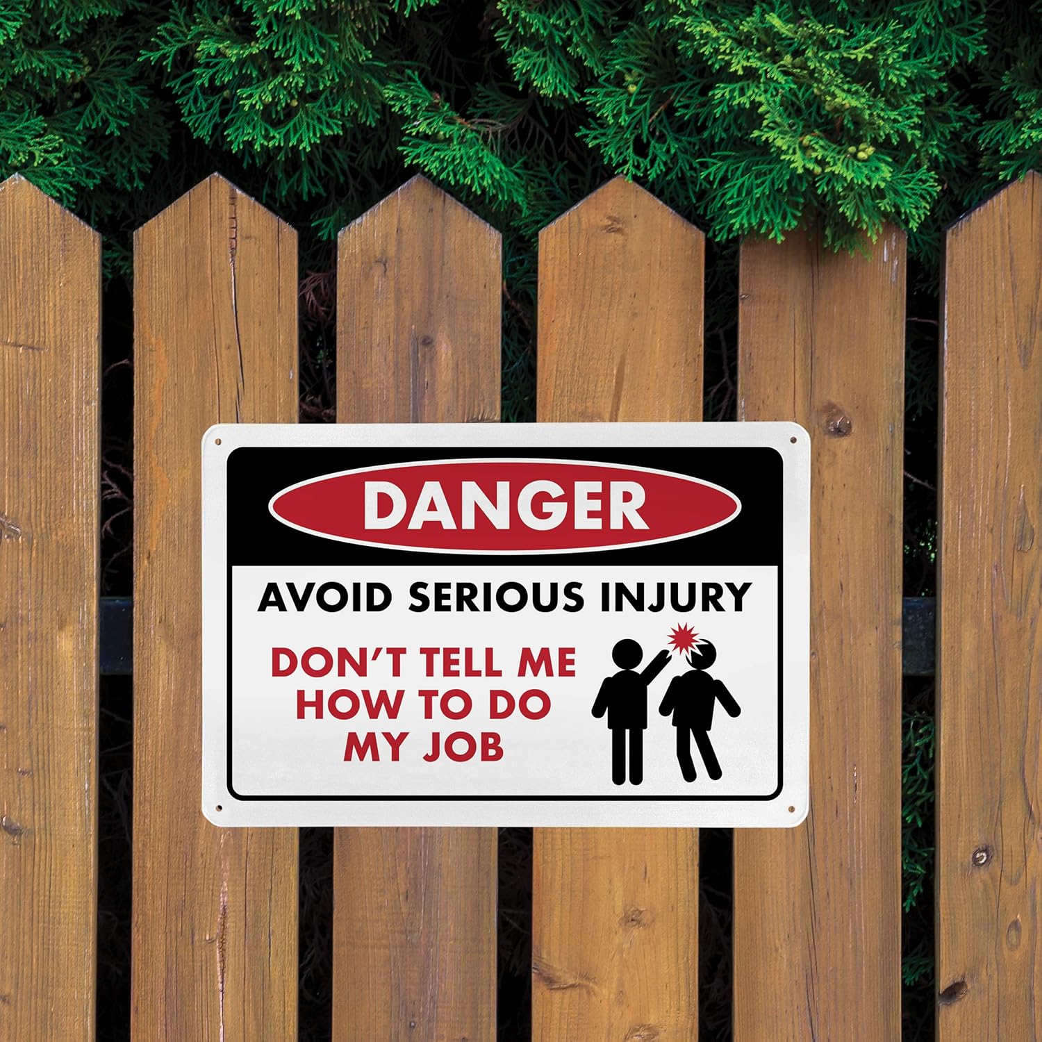Avoid Serious Injury Don't Tell Me How To Do My Job - Humorous Metal Sign - 8" x 12" - Funny Garage Sign, Office Wall Decor, Mechanic Gift, Street Sign for Bedroom - ENVISIONED Signage