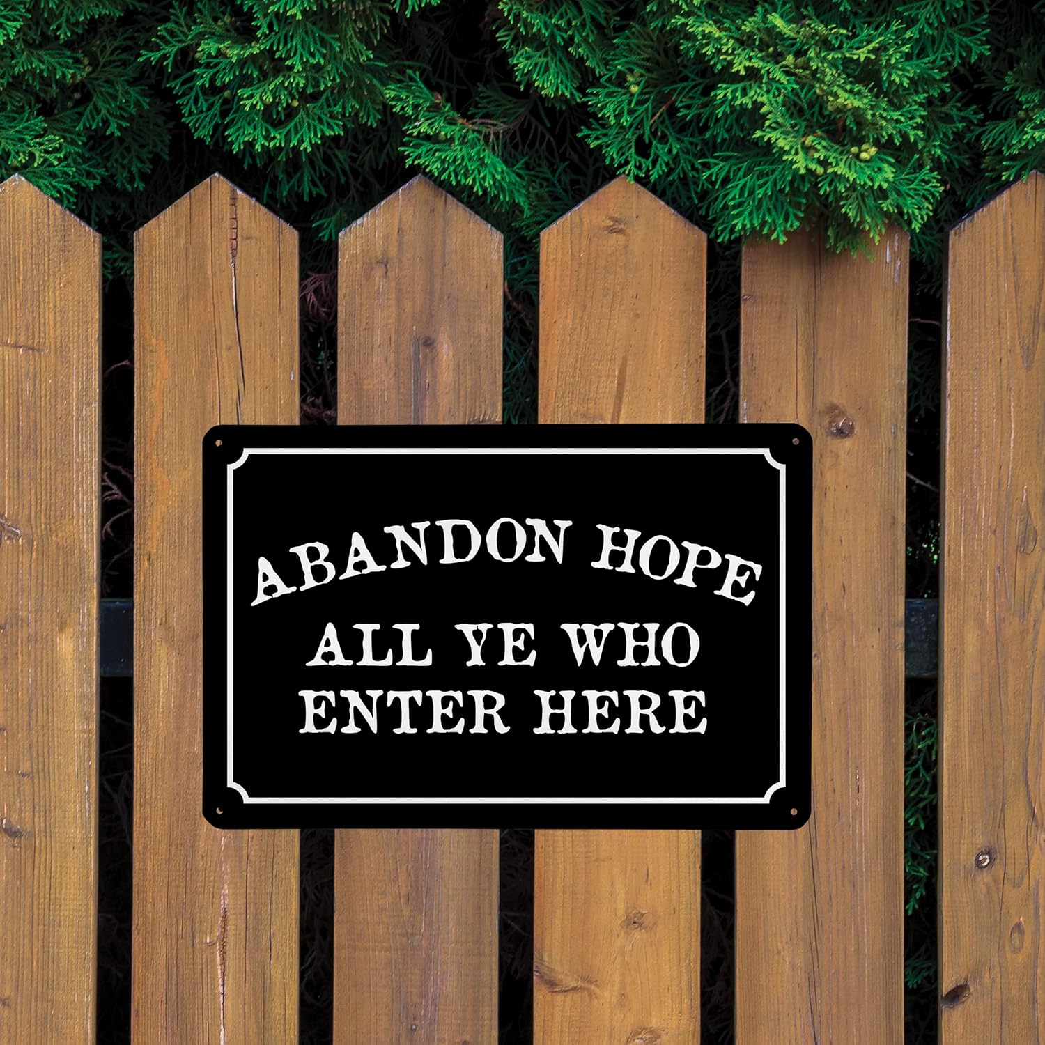 Abandon Hope All Ye Who Enter Here - Humorous Metal Sign - 8" x 12" - Vintage Halloween Decor, Home Office & Man Cave Décor - ENVISIONED Signage
