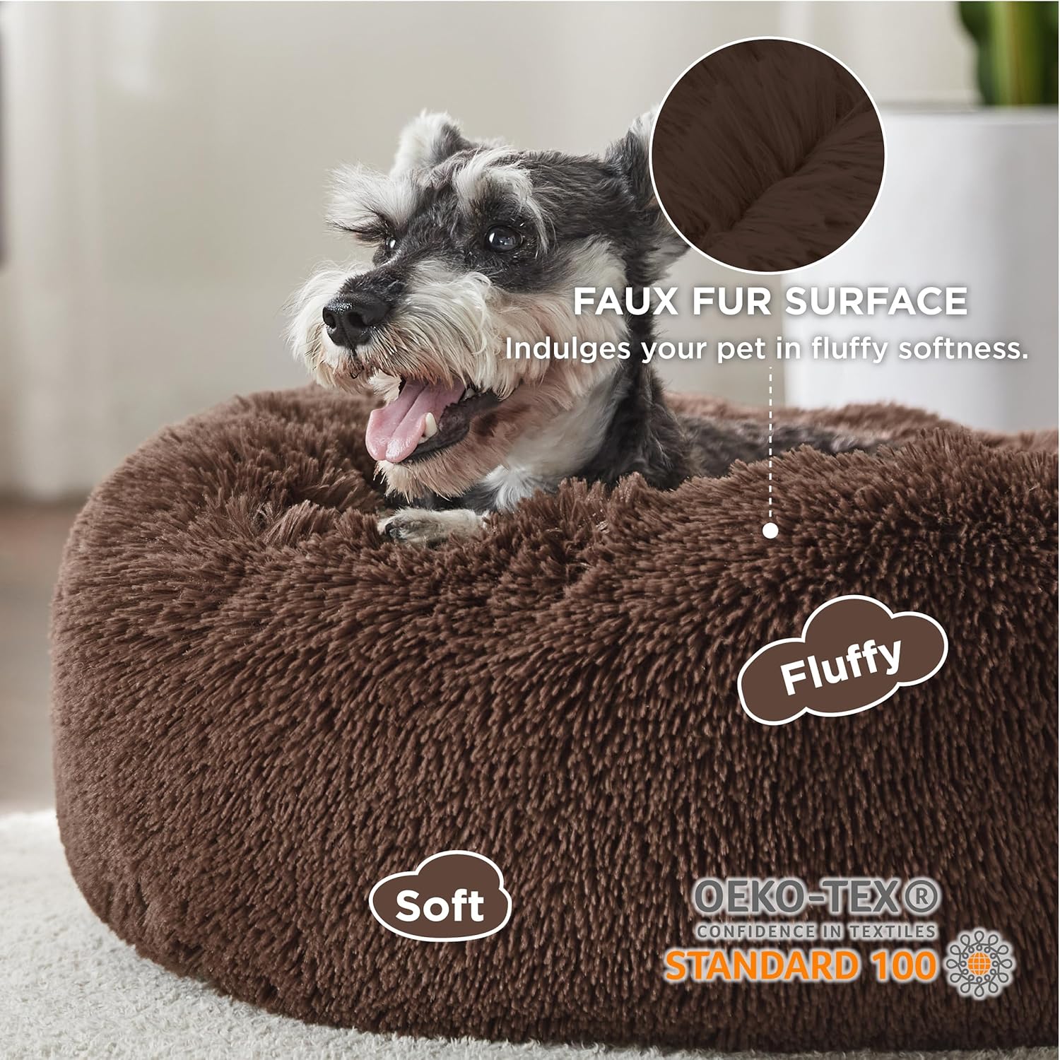 Bedsure Calming Dog Bed for Small Dogs - Donut Washable Small Pet Bed, 23 inches Anti-Slip Round Fluffy Plush Faux Fur Large Cat Bed, Fits up to 25 lbs Pets, Coffee
