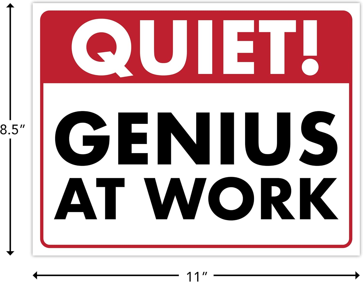 Quiet! Genius At Work - Humorous Laminated Sign - 8.5" x 11" - Funny Garage Sign, Office Wall Decor, Mechanic Gift, Street Sign for Bedroom - ENVISIONED Signage