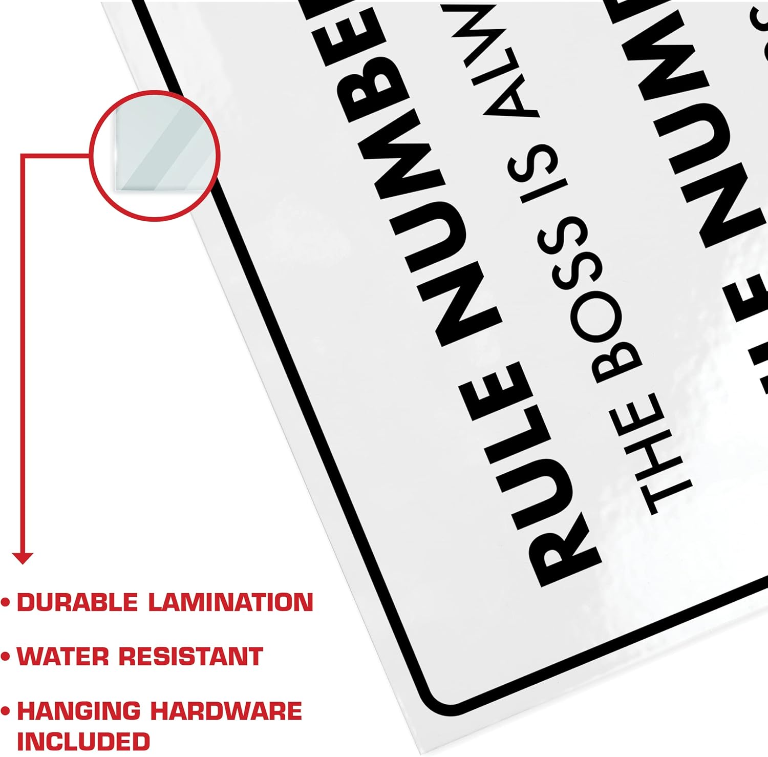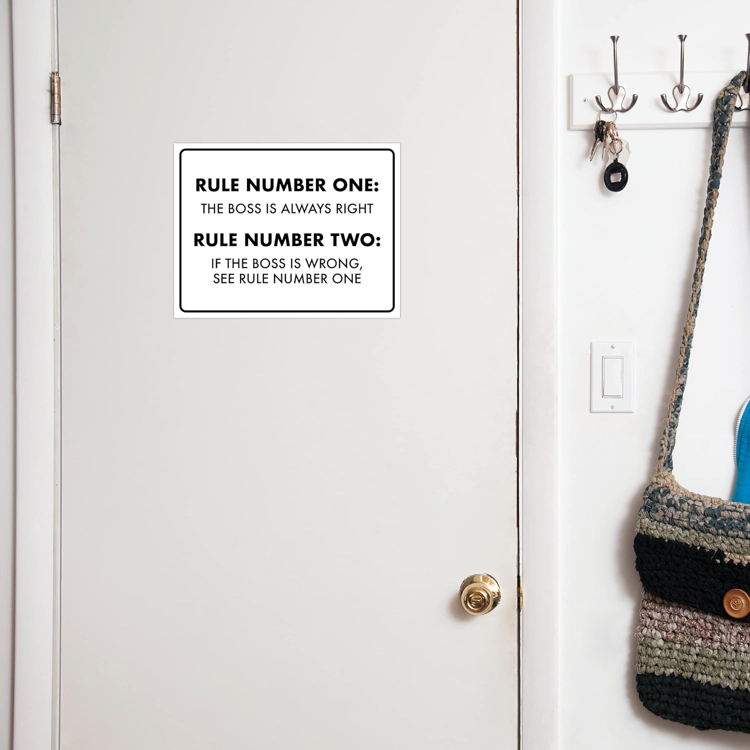 ENVISIONED Decorative Signage - Boss Rules 8.5 x 11 inches Metal Sign, Funny Office Decor, Laminated, Mounting Putty & Adhesive Hook Included